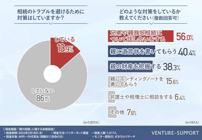 ベンチャーサポート相続税理士法人 (東京都中央区 代表税理士 古尾谷裕昭 https://vs-group.jp/sozokuzei/supportcenter/)は、「親の相続」に関する実態調査を実施いたしましたので、お知らせいたします。
