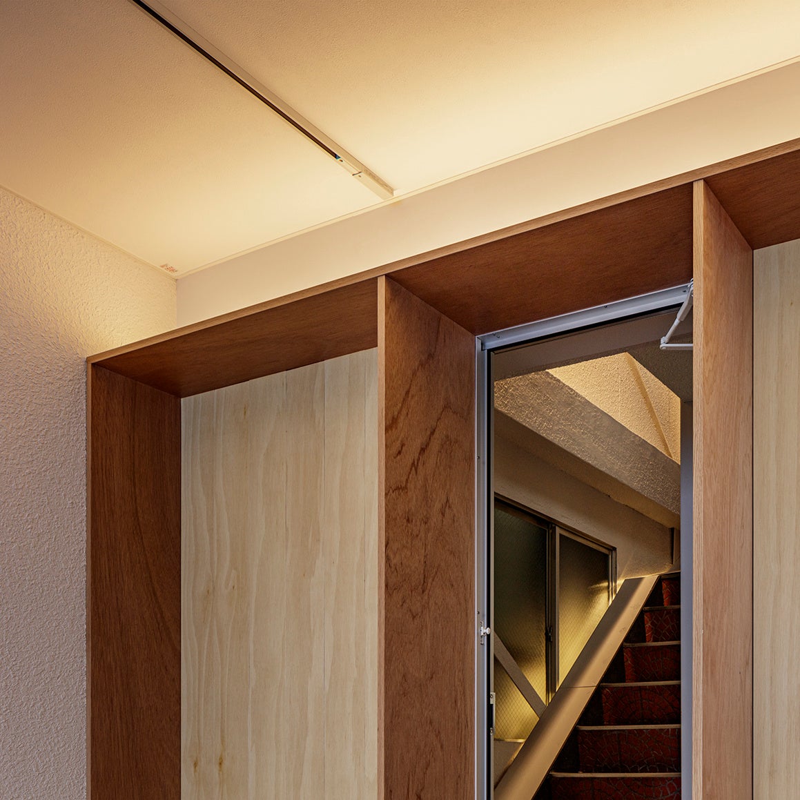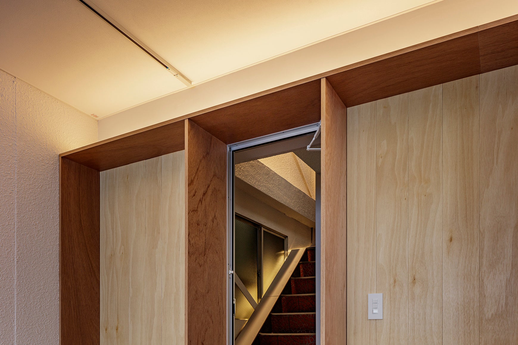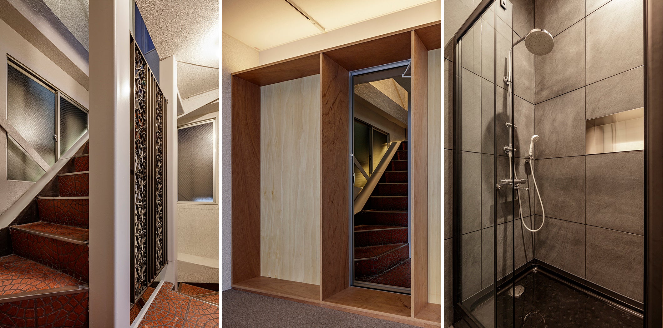 築43年のファッション系問屋ビルのデコラティブなディテールを残しつつ、各室は入居者が活用しやすいごくシンプルな空間に全面リノベーション。1 階は飲食店、2~4階はシェアハウスとSOHOを組み合わせた生活機能型SOHO(賃貸物件)、5階は入居メンバー共有のルーフトップとキッチンを配置しています。