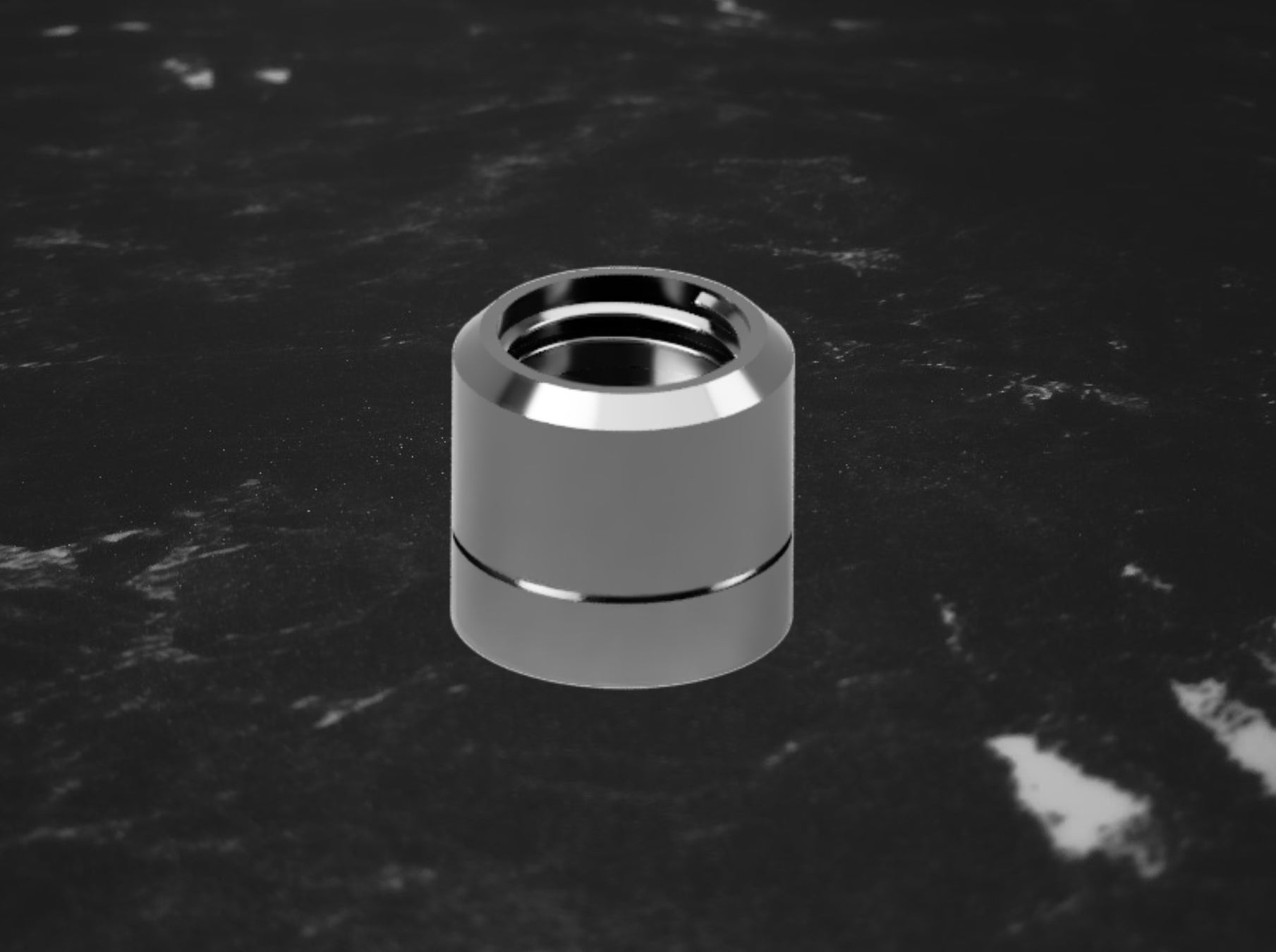 ソーダメーカーEZSODA01の本体は、ボトルとボトルをつなぐインジェクター(アルミ削り出し製)のみです。大きさは、ペットボトルキャップを2つ重ね、一回り大きくしたサイズです。