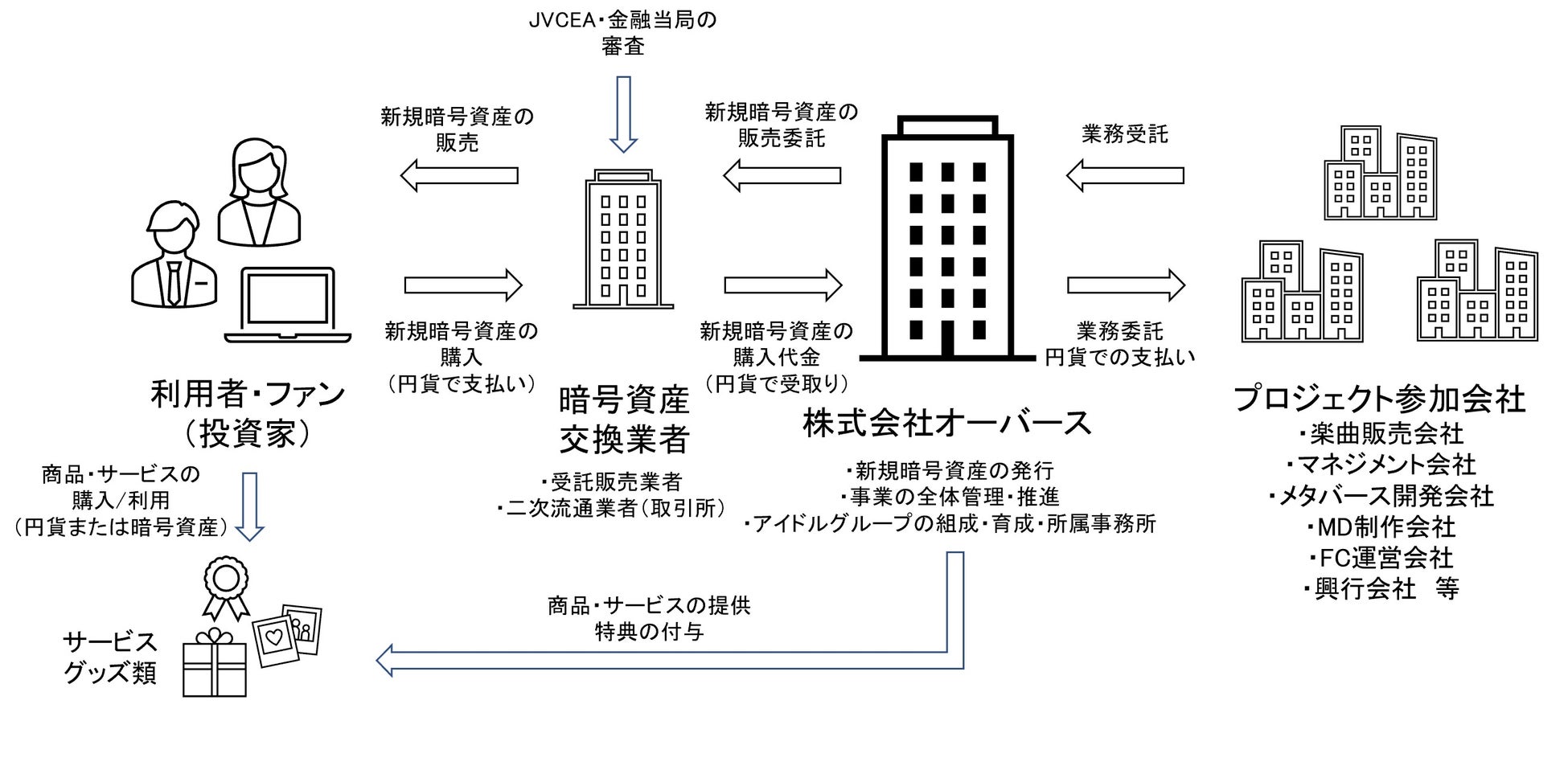 株式会社オーバースは、新しいアイドルグループの創造に向けて設立された、エンターテイメントを企画、制作及び開発する会社であり、本プロジェクトにおける新規暗号資産の発行者となります。