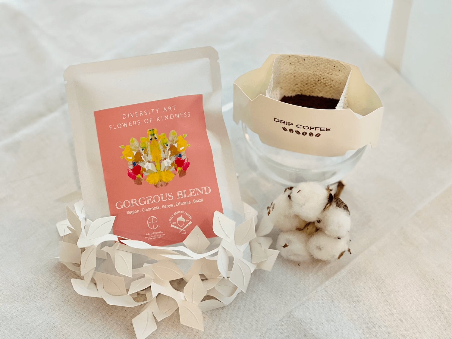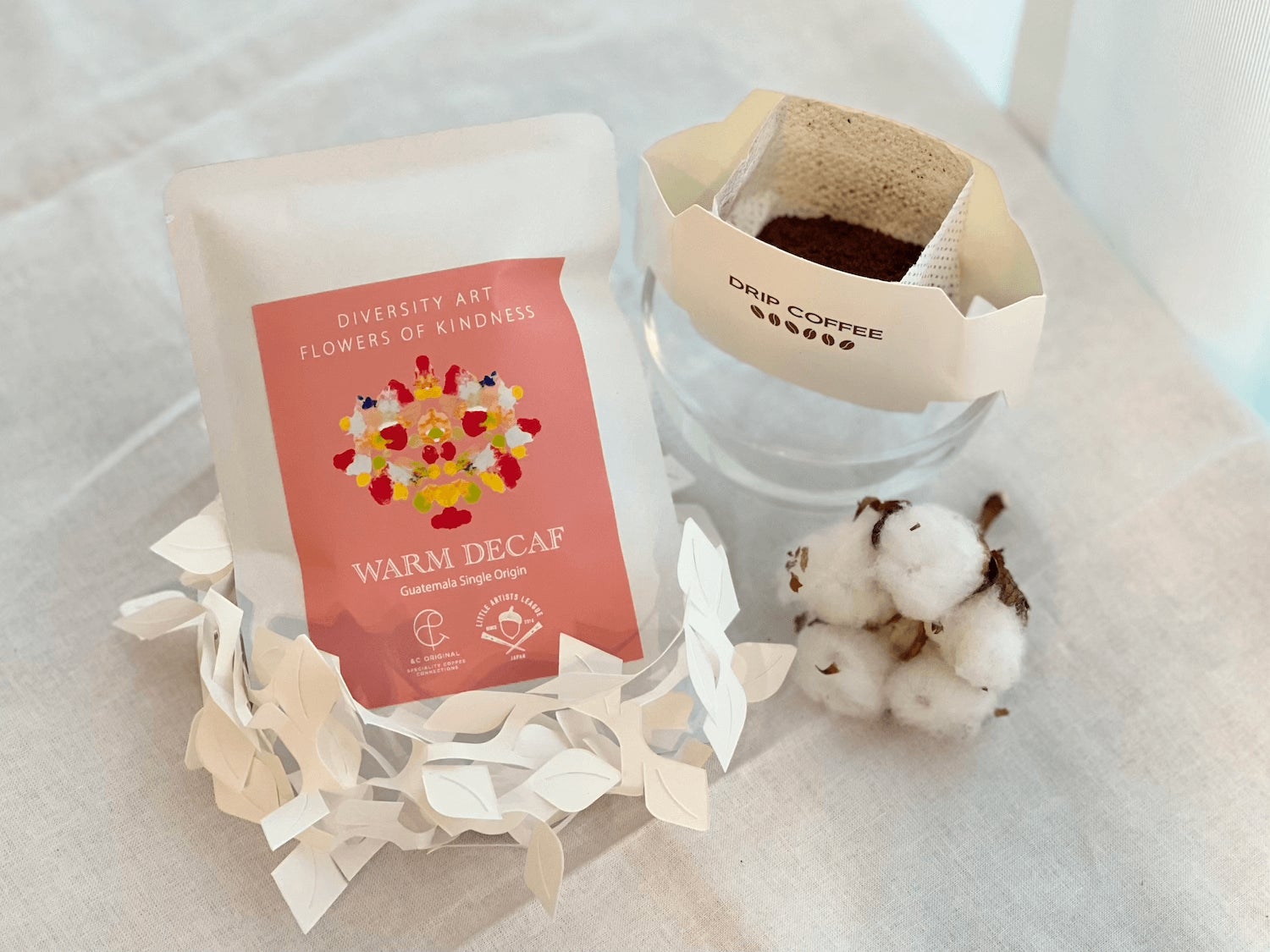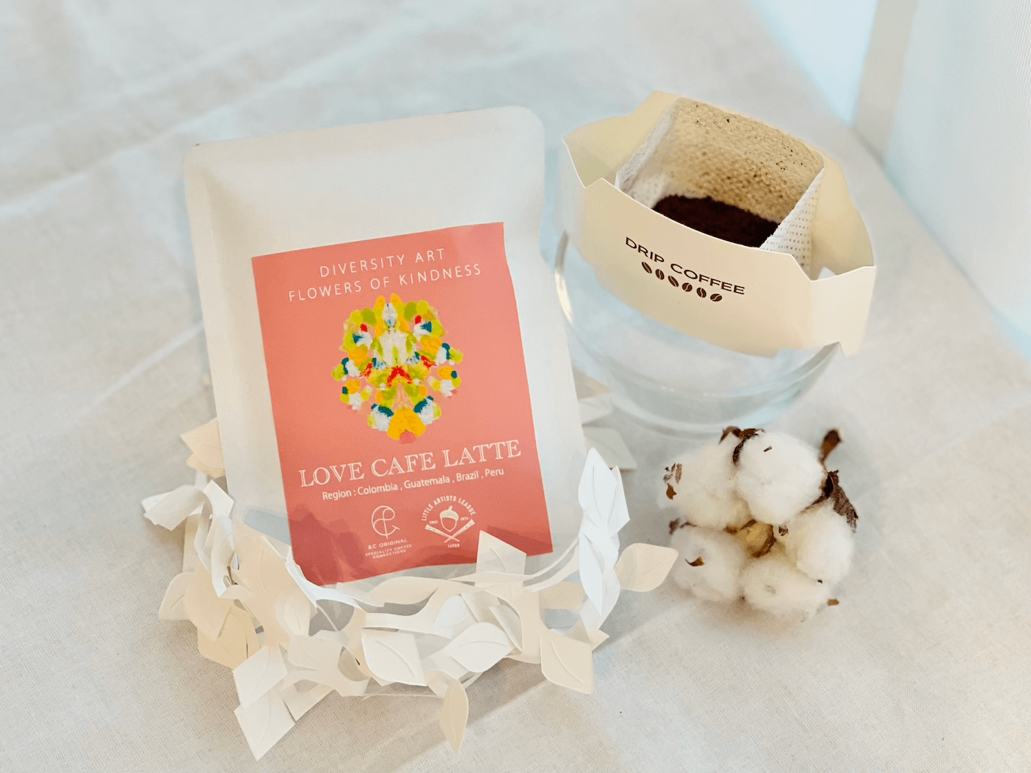兼ねてより福祉とコーヒーを掛け合わせる展開をしていましたが、社会課題をアートで解決するグローバルアートチームLITTLE ARTISTS LEAGUEのアートプロジェクト「やさしさの花」コーヒーシリーズにて、本格的な展開を始めます。”やさしいことをすると咲くやさしさの花”をテーマとした「やさしさの花」からインスパイアを受けたコーヒーシリーズです。香りやその背景にある物語をお楽しみいただき、コーヒーを中心としたスペシャルな時間をお過ごしいただいたり、”やさしさとは何か”を考えるきっかけとなればと願っています。