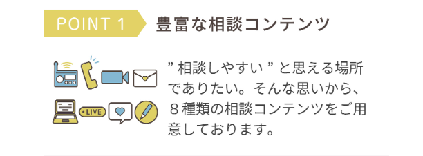 ・特徴:8つのコンテンツを使用した多岐にわたる相談のやり取りが可能