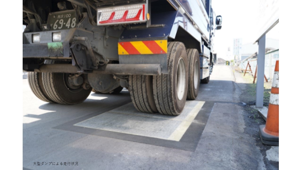 現在、日本においても耐久性、安全性に関して検証を行っています。特に、大型車の走行に対する耐久性の確認として、当社のアスファルト混合物製造工場(工場名:埼玉アスコン、埼玉県川越市)で実証実験を開始しています。