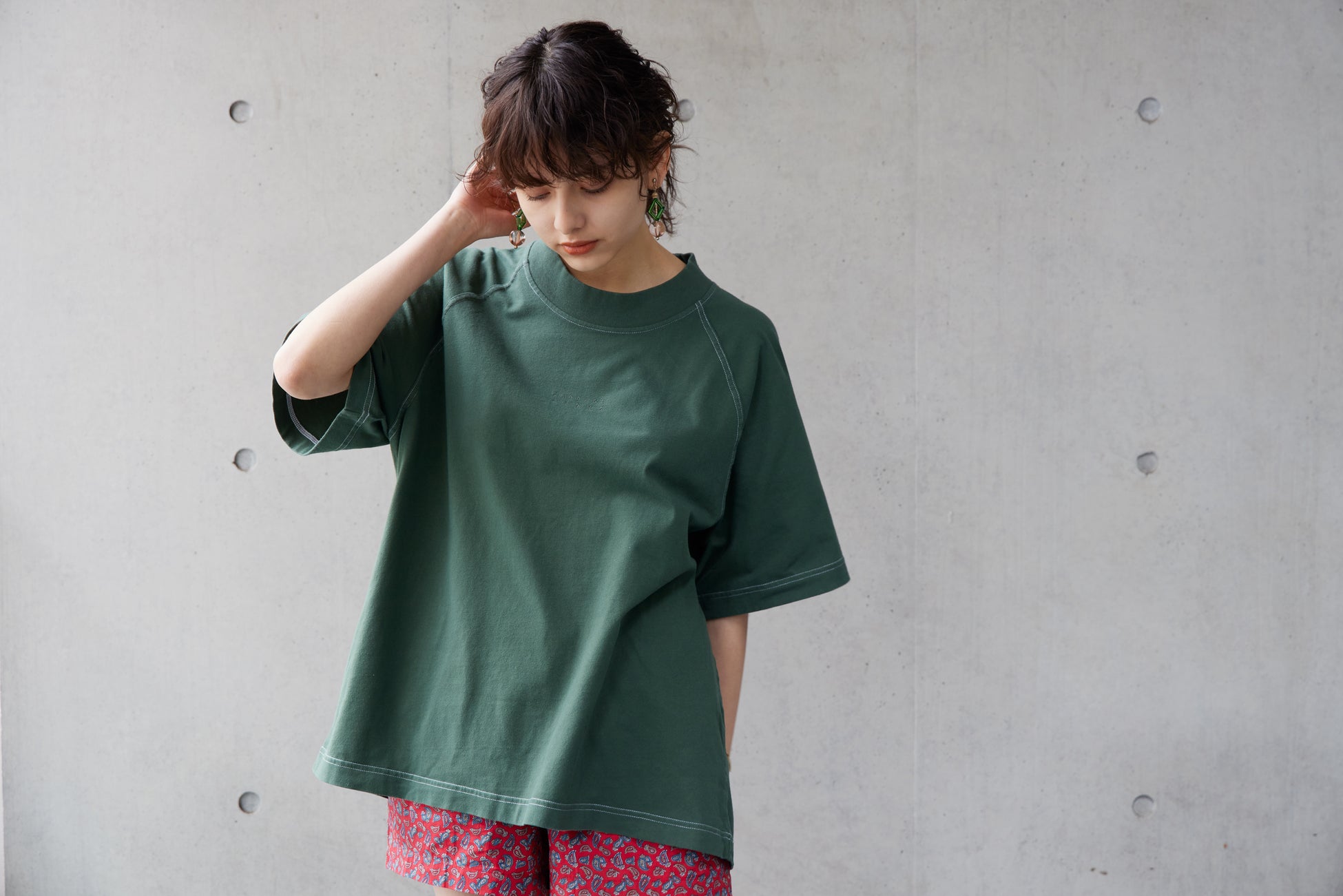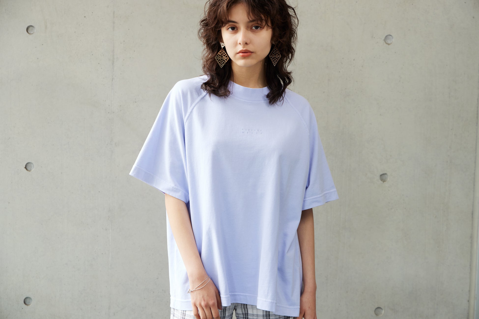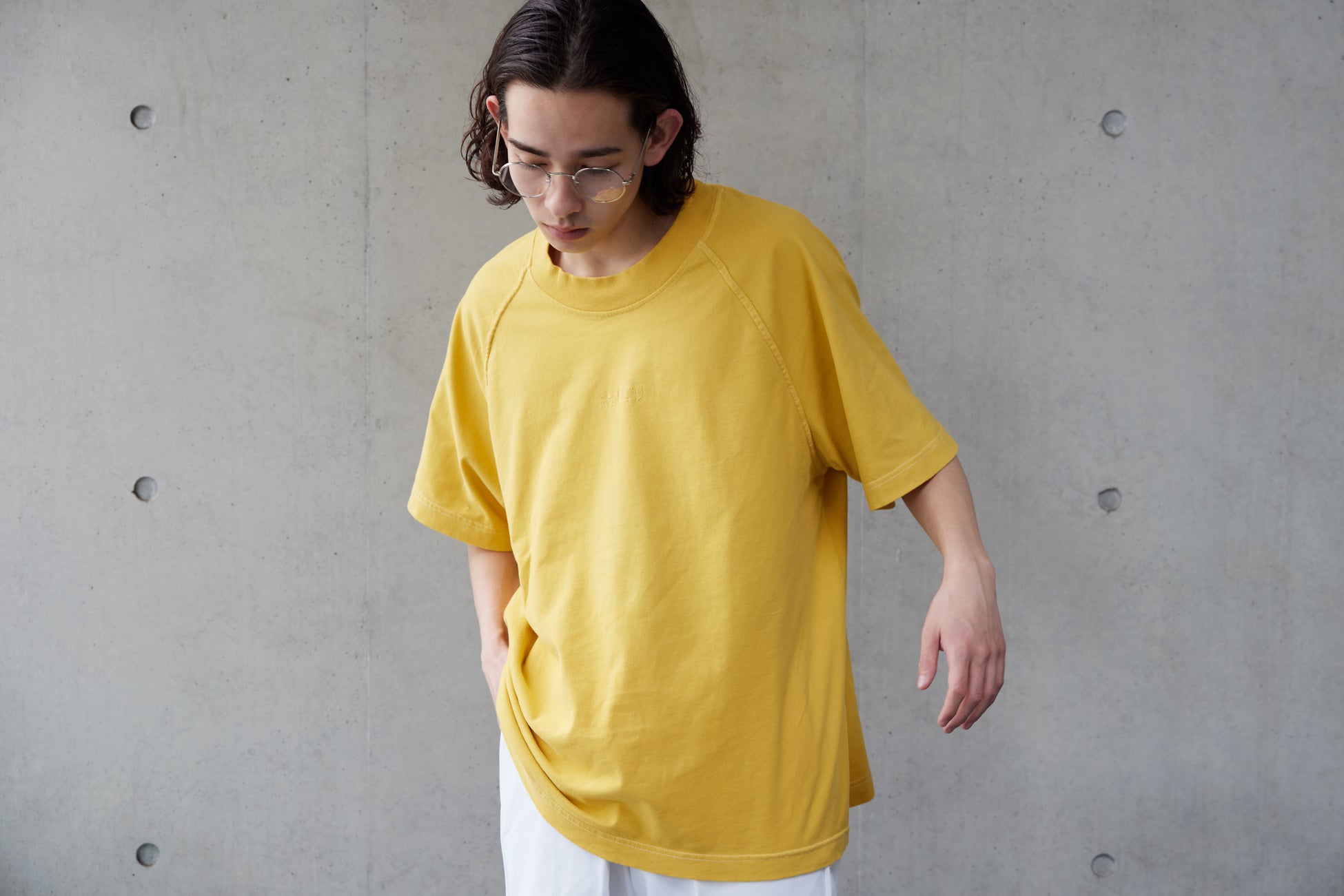 Suppage MARKS Original T-shirt(White)を、ベビーラベンダー、マスタード、ダークカーキの3色に染め上げました。ワイドボディ・ラグランのシェイプが特徴的なシルエットに、胸元にあしらわれたブランドロゴの刺繍がアクセントになっています。