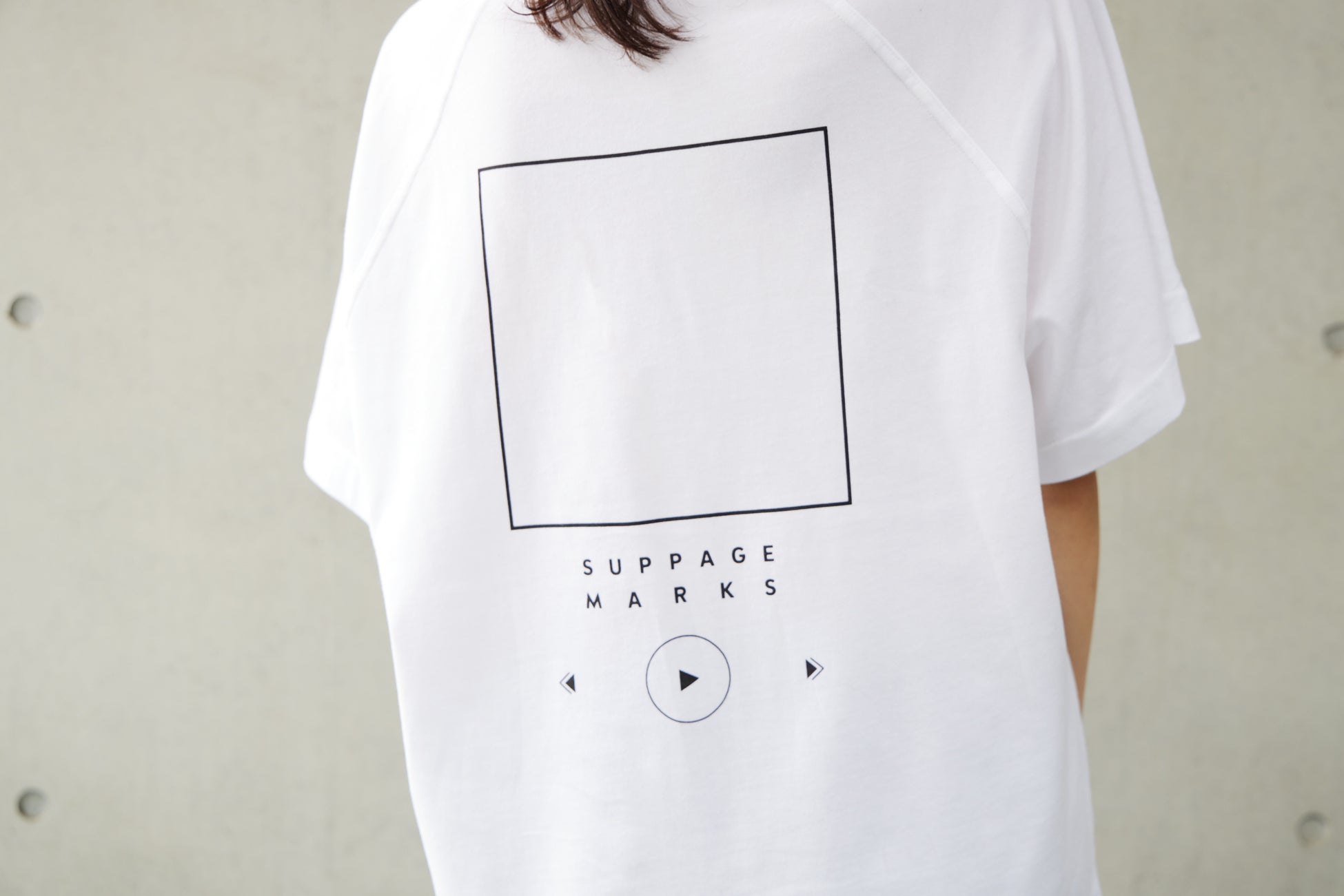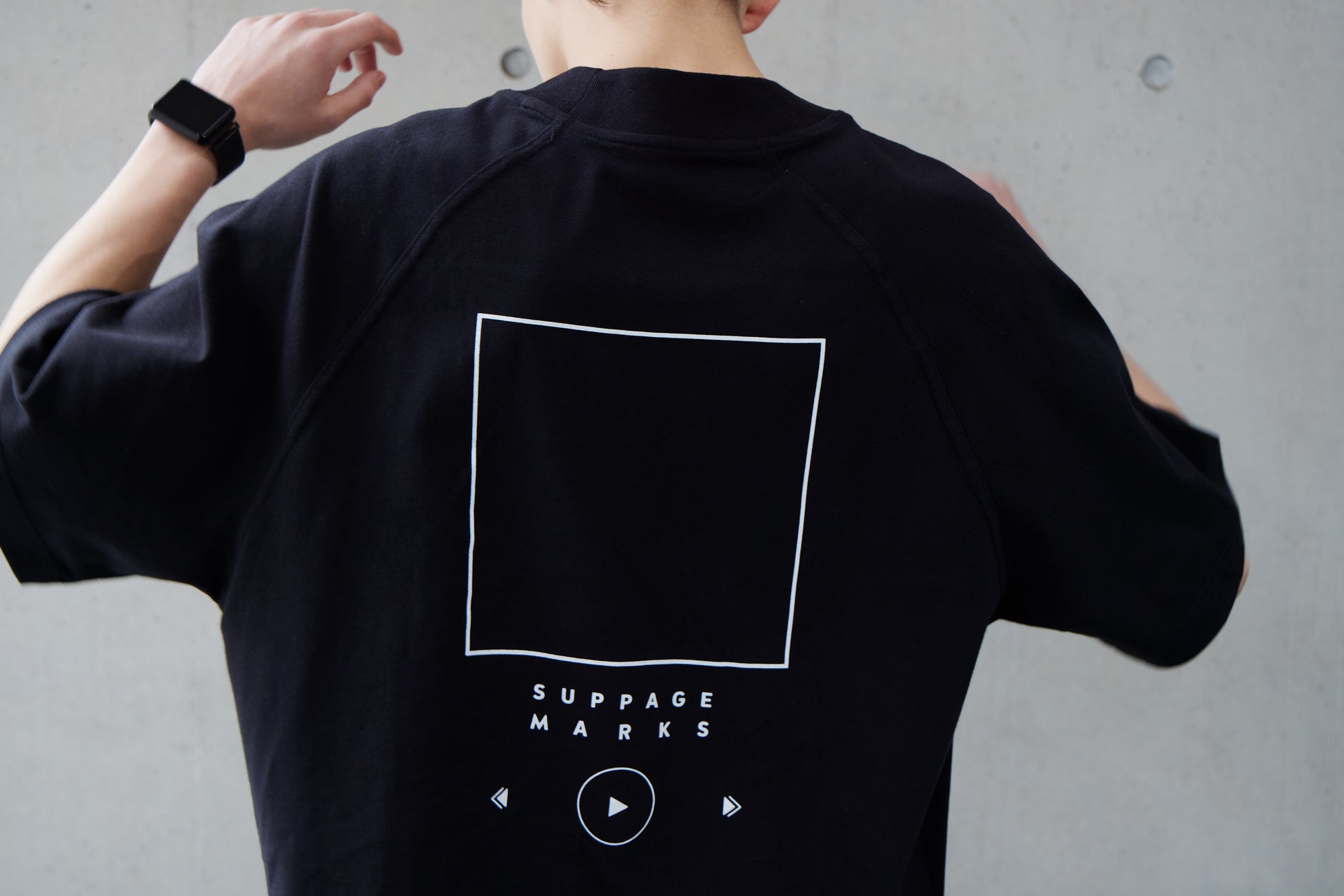 Suppage MARKSのベースである"音楽"を身に纏い、共に過ごせるバックプリントTシャツです。胸元にはブランドロゴの刺繍があしらわれています。