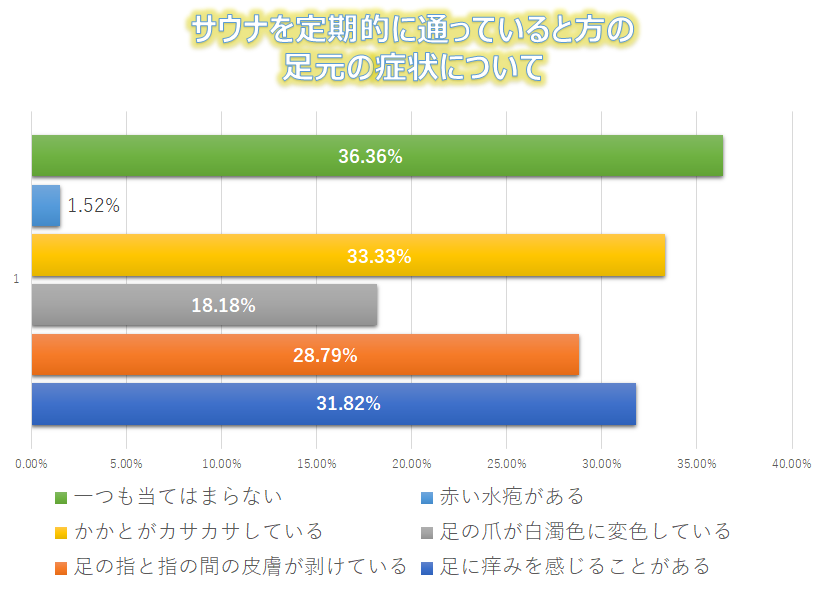 このことから、サウナブームと言われる昨今ですが、サウナでの水虫感染の危険性を知らず、帰宅後に足を洗うなどの水虫対策をしないままサウナを利用している実態がわかりました。
