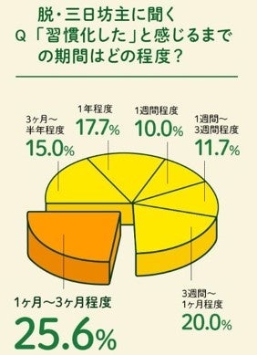 新しいことに取り組んで習慣化したと感じるまでの期間について、1か月~3か月が最多。