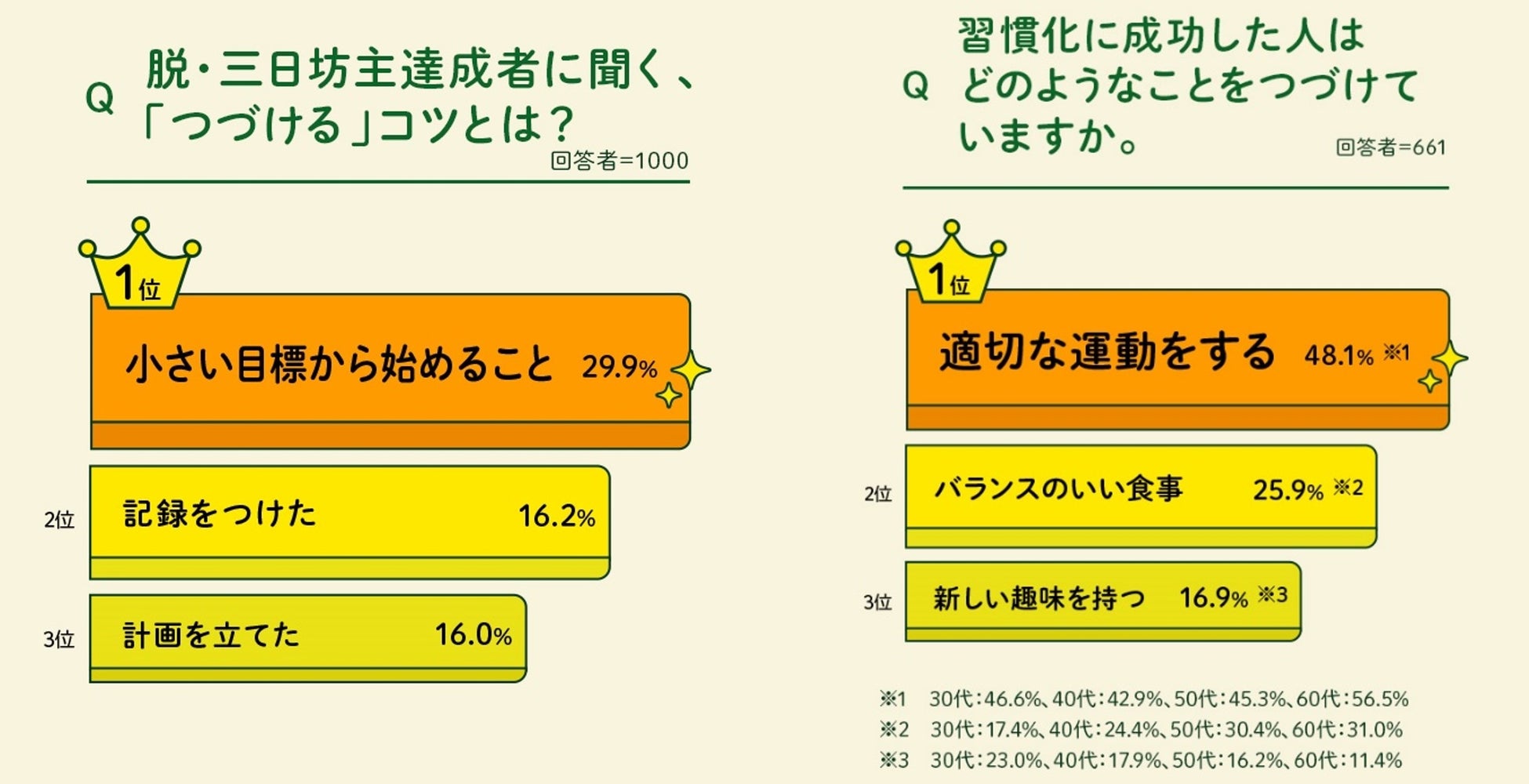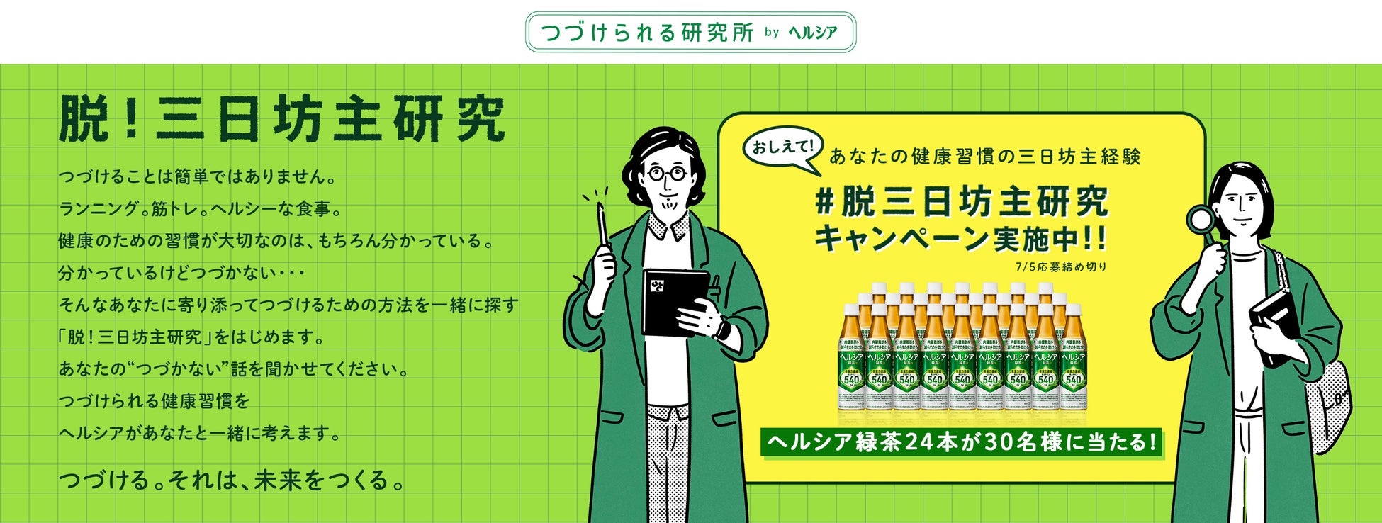 つづけること・つづかないことを研究する『脱!三日坊主研究』花王ヘルシアが生活者の”生の声”を解明!健康習慣における三日坊主の原因を大調査