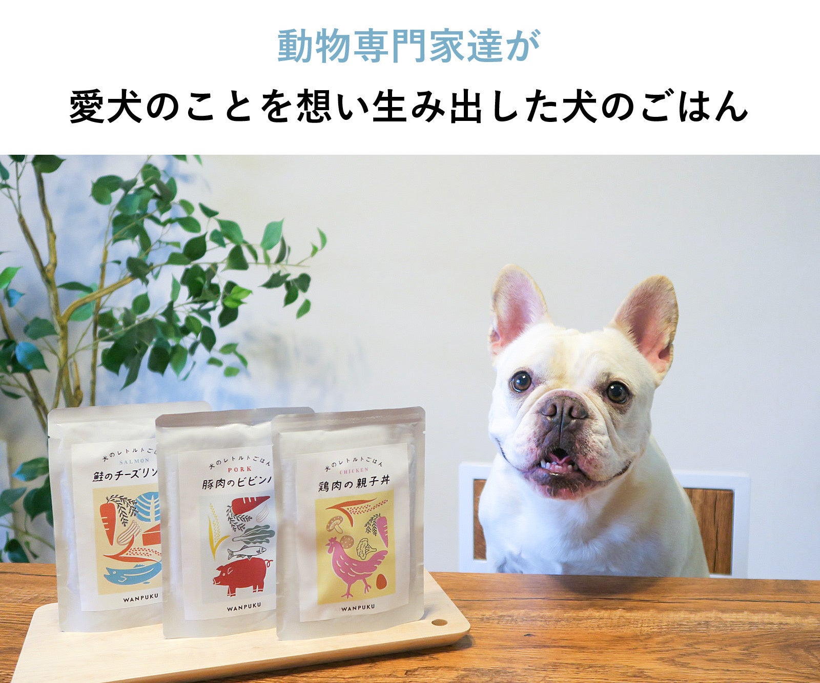 WANPUKUは、家族である愛犬(ワン)が美味しいごはんを食べて満腹(プク)で心も体も満たされますようにといった想いが込められたブランドです。