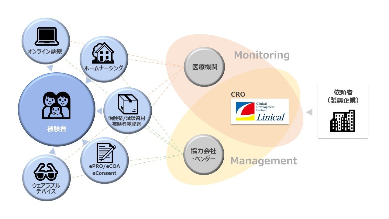 株式会社リニカル(本社:大阪市淀川区、代表取締役社長 秦野和浩)は、日米欧の治験で実績のある分散型臨床試験(Decentralized Clinical Trial, 以下DCT)に対応したサービスを、医薬品の製造販売後の臨床試験・市販後調査・臨床研究(以下、製販後試験)まで対象を拡大して提供を開始しました。グローバルに展開するCROとして、製販後試験の様々なニーズに応じて、GCP等の基準に適合した適切なシステム選定やベンダーマネジメントを行い、品質と安全性の確保されたDCTの実現をサポートします。リニカルは、治験段階から製販後までのすべての臨床試験においてDCT化を推進することで、試験に参加される多くの被験者の皆様の通院負担を軽減し、医薬品開発の効率化を支援します。