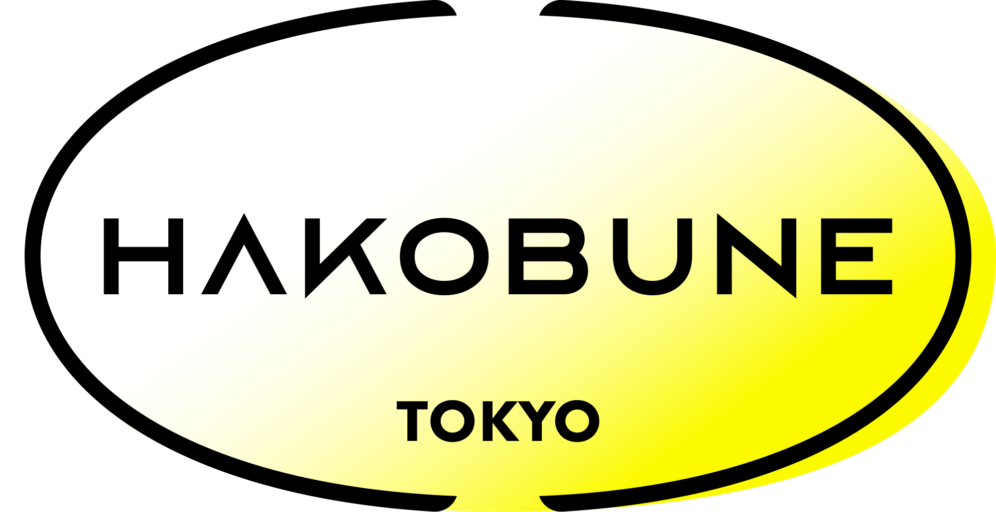 HAKOBUNEのロゴは、大人の品性とはみ出し者感を掛け合わせた表現のシンボルマークとなるデザインを意識して創り上げました。船を真上から見た造形をモチーフとし、上下の切れ目は入口と出口を表現、未知なる世界を表現する色として蛍光イエローをブランドカラーとしています。枠に収まらない「はみ出し者」を表現するため、グラフィティアートのような塗り色を使用し、世界に挑戦していく(旅していく)ことを見据え、TOKYO号を意味する表記を刻印したロゴに仕上がりました。(Design : 櫛間圭太)