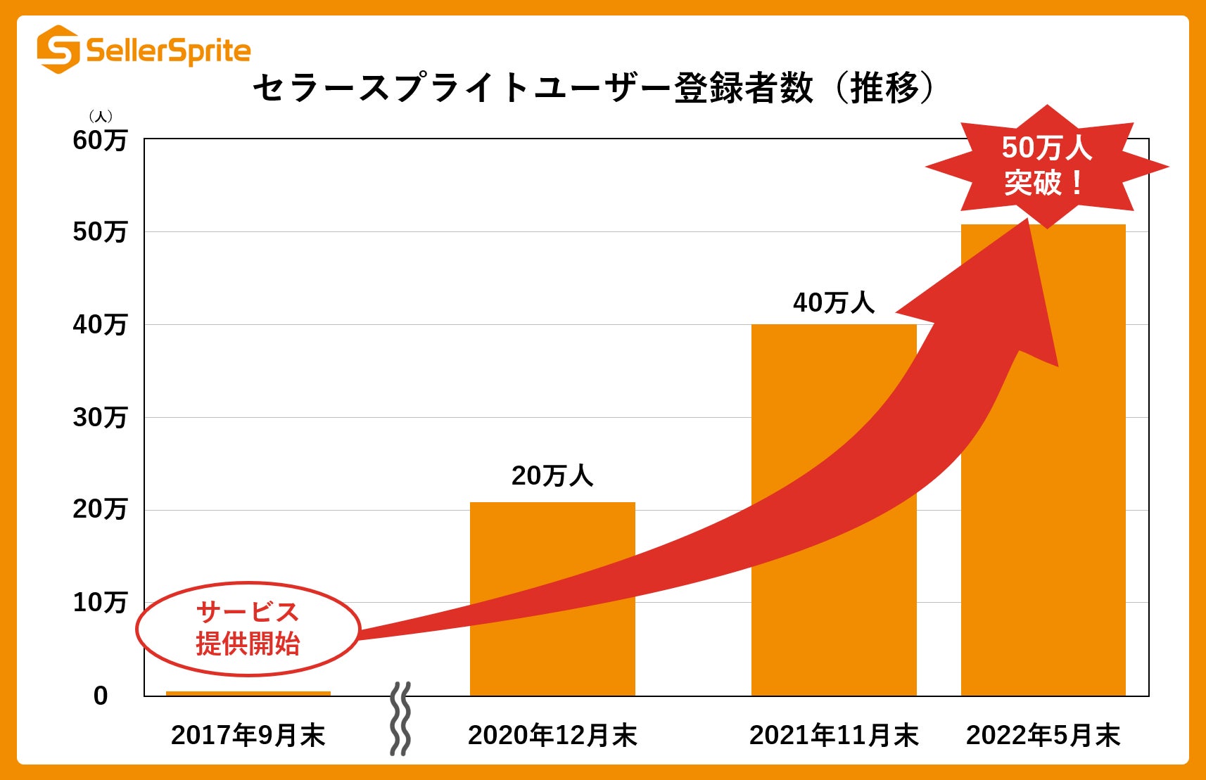成都云雅信息技术有限公司(本社:中国四川省/代表:陈志武)が運営を行う、Amazon販売に特化したリサーチ・分析ツール「SellerSprite(以下、セラースプライト)」の登録ユーザー数が2022年5月末に世界で50万人、日本で3.5万人を突破しました。世界の登録ユーザー数が40万人を突破した昨年11月末から、約半年で10万人以上を新規獲得し、登録ユーザー数が急伸しています。