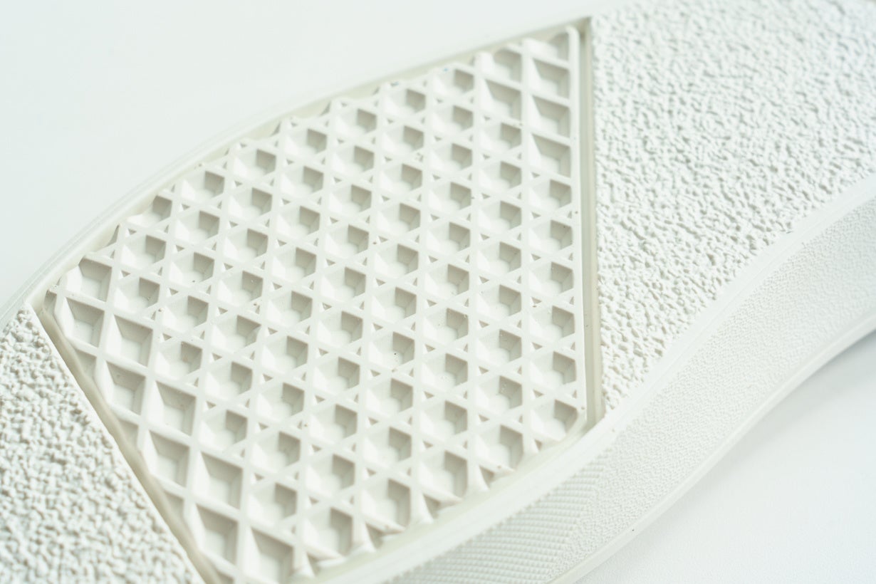 金具を使用しないことで生分解性の阻害をしないだけでなく「金具が当たって足当たりが痛い」や「高級感のある金具だと重くなってしまう」など靴本来の悩みも、より快適に自然に履いていただけるように採用しています。