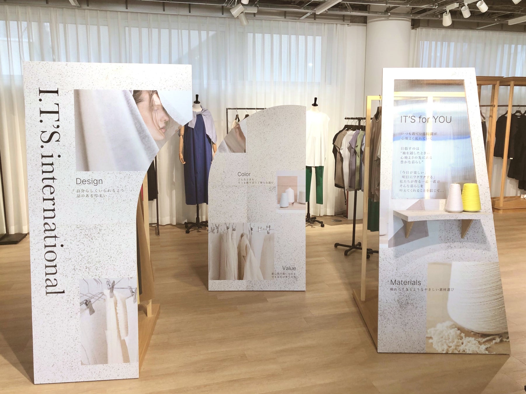 この什器は、3月から4月に伊勢丹立川店で開催された「I.T.’S. international」のポップアップストアで導入をスタート。続いて、今後開催されるポップアップストア、新規オープンやリニューアル店舗にアイコンとして順次設置されます。