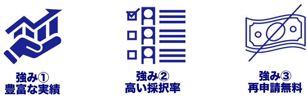 また、万が一不採択になったとしても、受かるまで何度でも無料で再申請いたします。ご安心ください。