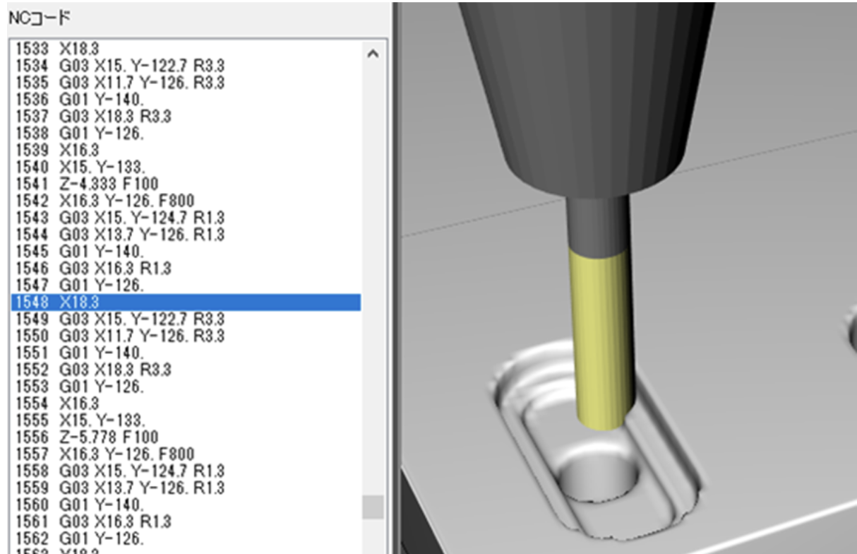 Virtual NCでは、手入力のNCプログラムの加工結果を、3D切削シミュレーションで確認できます。