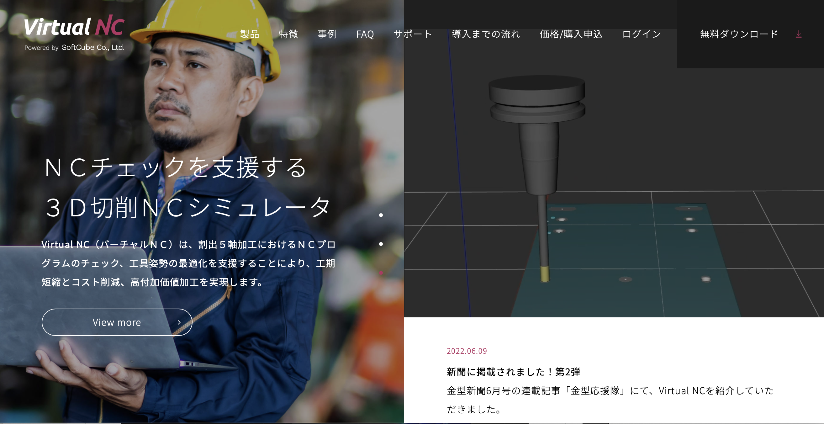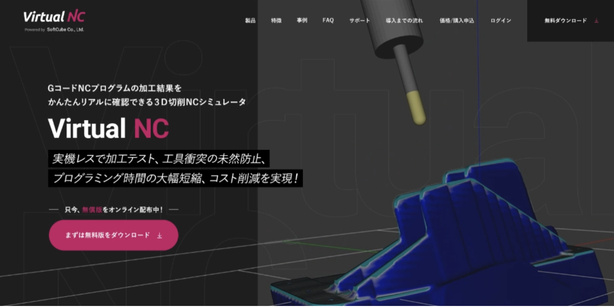 3D-CGソリューション事業を手がけるソフトキューブ株式会社がNC工作機械のシミュレーションを行う3D切削NCシミュレータ『Virtual NC』をリリース!