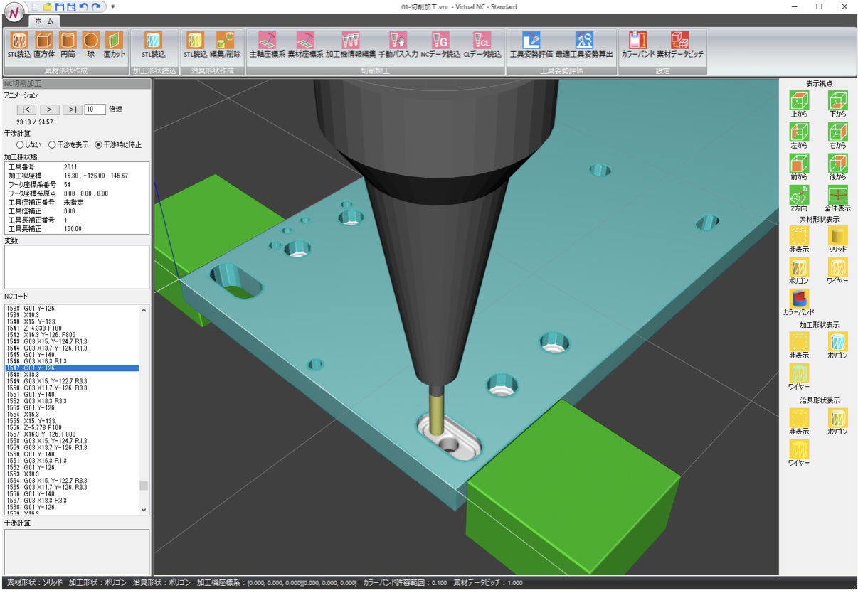 Virtual NCはGコードNCプログラムの加工結果をかんたんリアルに確認できる3D切削NCシミュレータです。