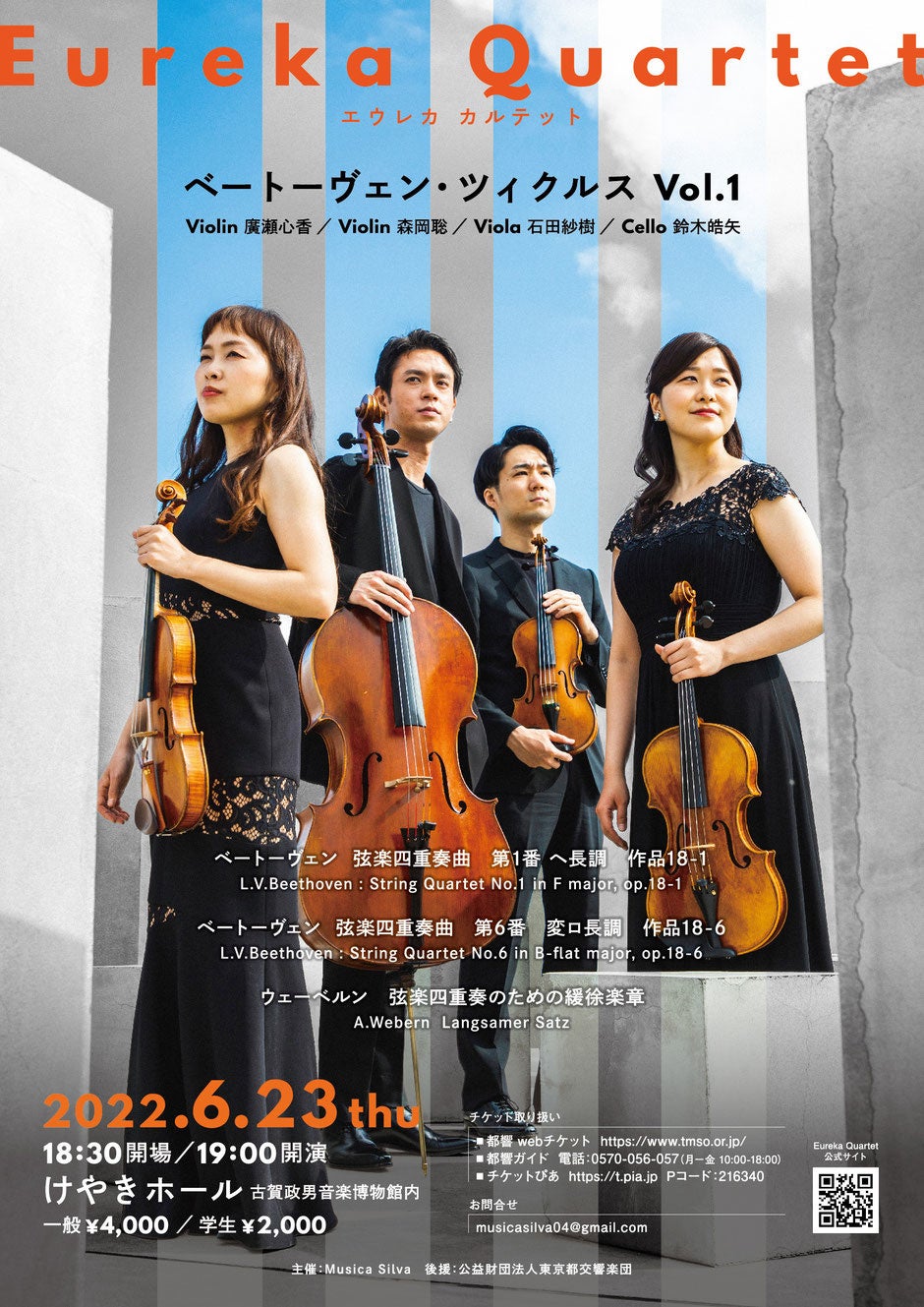 Eureka Quartetのメンバーを中心に、弦楽器・管楽器・ピアノ等さまざまな形式・編成でコンサートを開催予定です。