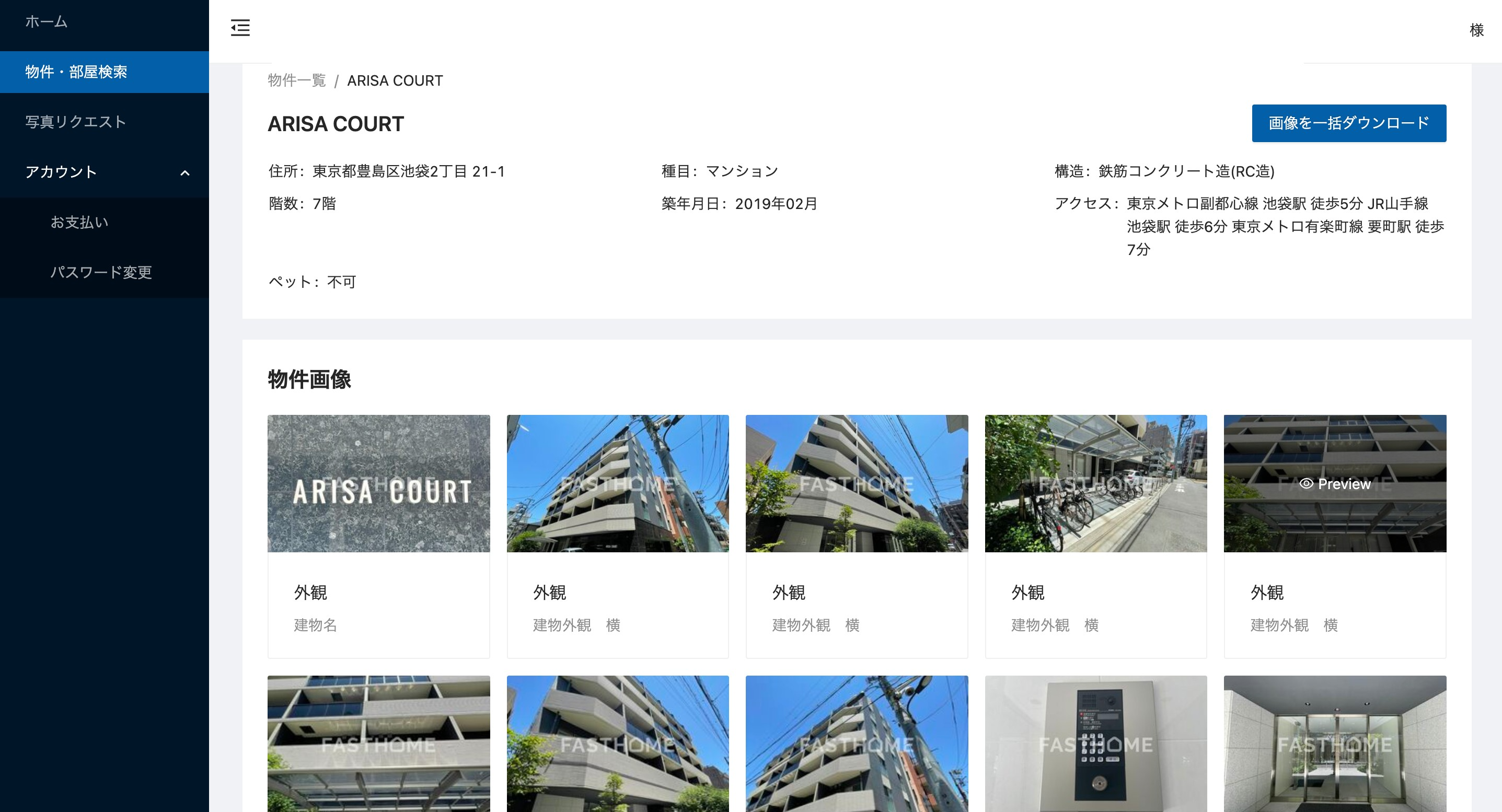 FASTHOME PHOTOの管理画面(不動産会社側が閲覧する画面)