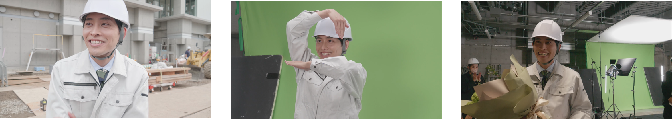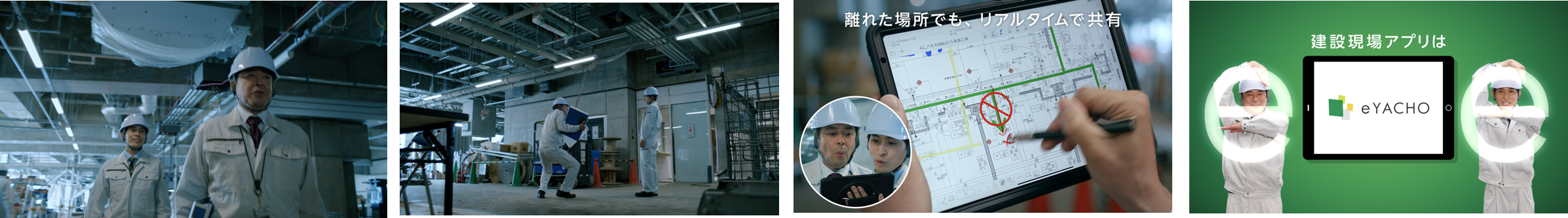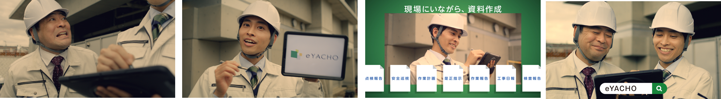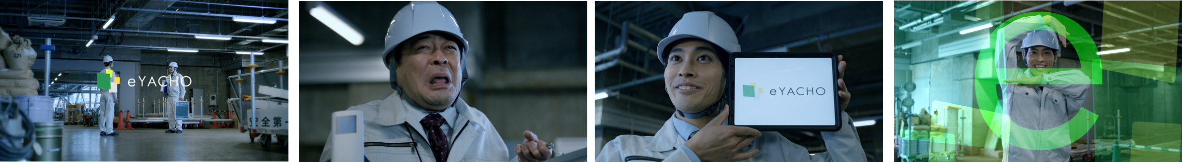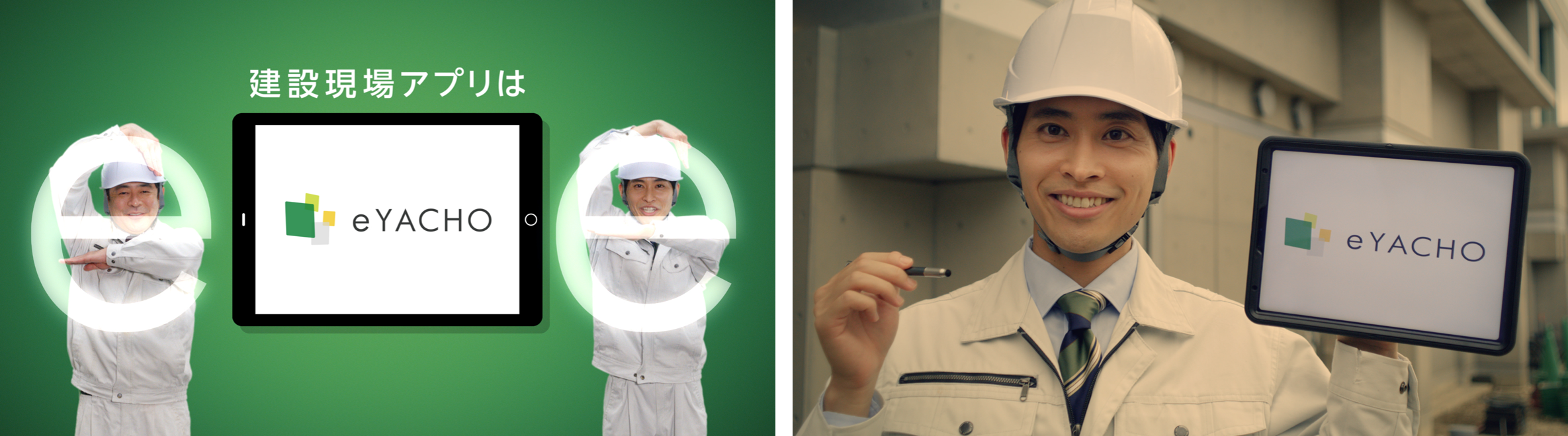 - 建設現場で活躍するデジタル野帳「eYACHO」を体現!絶妙な掛け合いと”eポーズ”にも注目!