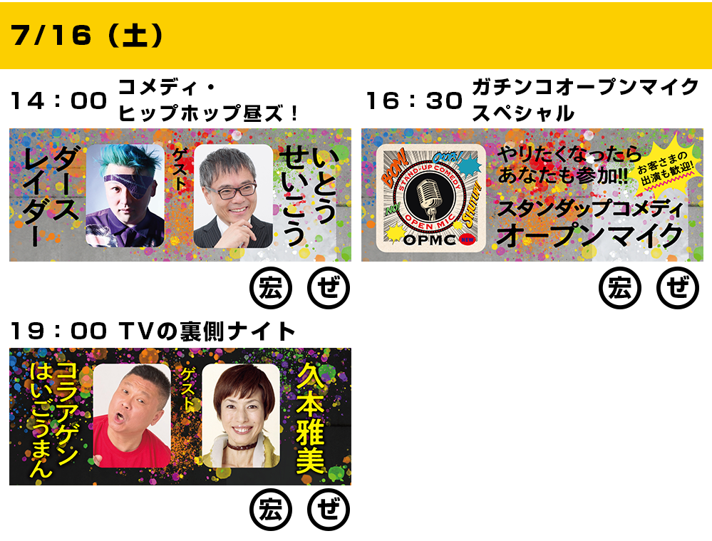 料金:前売り 3,000円 ※7/16(土)16:30公演 1,000円(オープンマイク)