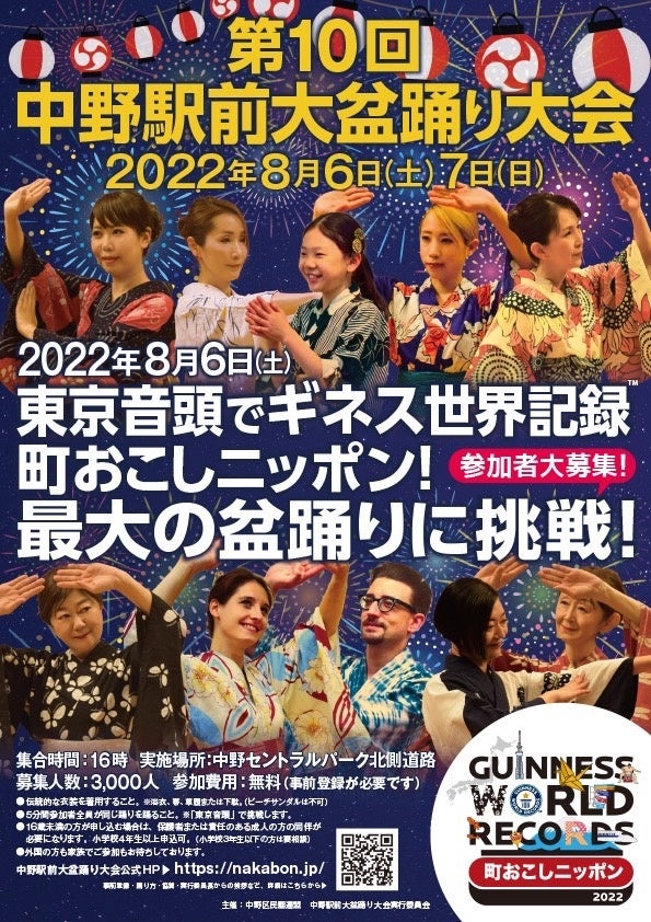その為 第10回中野駅前大盆踊り大会の一部(前)において『ギネス世界記録 最大の盆踊り』に挑戦することを企画いたしました。