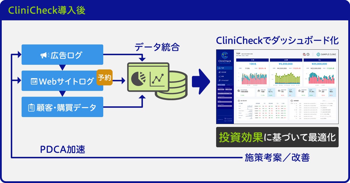 自由診療クリニック特化のデータ連携やダッシュボード開発を行うクリニケア株式会社。株式会社アール・ドクターとの開発で、投資対効果を計測する「CliniCheck(クリニチェック)」をリリース!