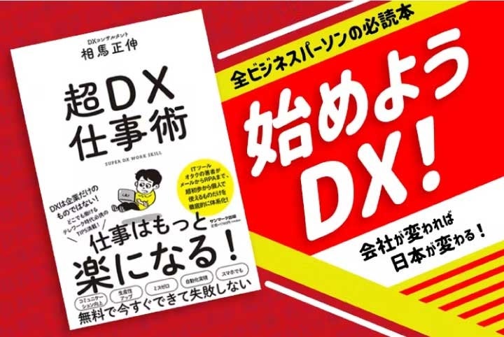 個人がDXを活用して、より高い成果を出す仕事の方法、それが「DX仕事術」です。DX仕事術は、お金も時間もかかりません。個人で始められるので、すぐ取り掛かることができます。たとえ今までDXとは縁のなかった方でもその「DX仕事術」を習得できる本、それが拙著『超DX仕事術』なのです。