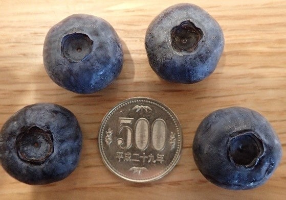 ブルーベリーは小さく酸っぱいと思われがちですが、東金ジャンボブルーベリーが栽培する実は100円玉大程度の実も多く実らせます。中には500円玉大を実らせる品種もございます。また、育てている系統は6月から収穫が始まる味わいが爽やかで皮の食感がパリッとしているハイブッシュ系統を約800本、7月下旬から収穫が始まる濃厚な甘さのラビットアイを500本栽培しています。一般的なブルーベリー観光農園は生育しやすいラビットアイ系が中心で7月中旬以降のオープンが多い状況ですが東金ジャンボブルーベリーでは6月の早い時期から格別においしいブルーベリー狩りを提供しています。