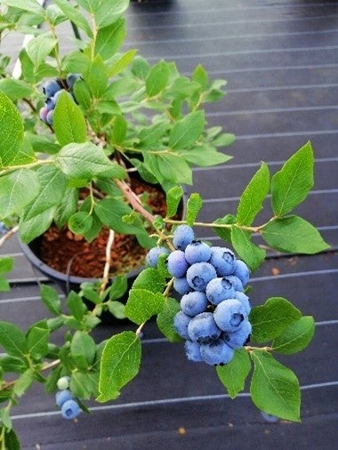 ブルーベリーは特別な栽培方法でポットを使った養液点滴システム栽培。地面に植えないことから地面をシート張りしており、お客様は雨の日でも足元が泥に汚れることなくブルーベリー狩りを楽しむことができます。