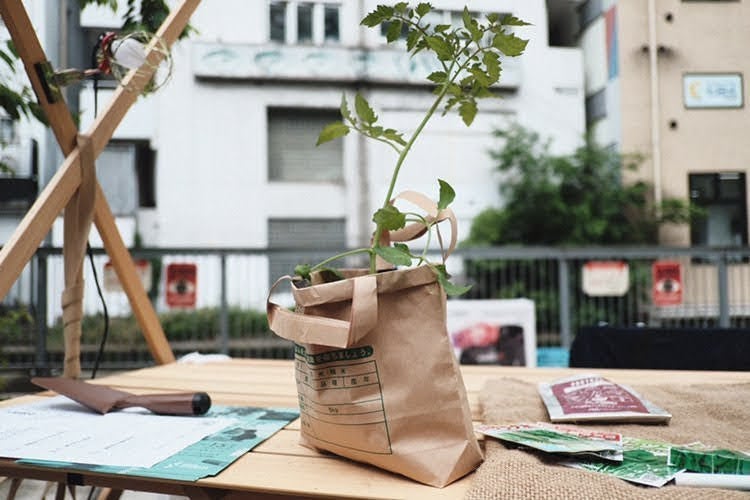 パタパタ組み立て、コロコロ移動できるから、どこでも簡単に「農園」が出現します。今回は、POP-UP FARMの展示と紙袋リメイクの野菜ポットに種まきをするワークショップを実施します。