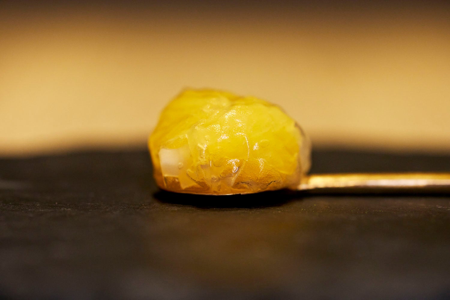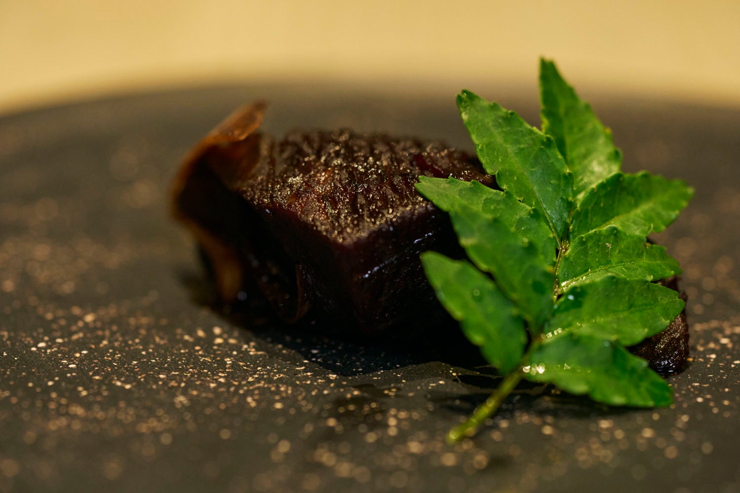 鮪は、素材そのもののポテンシャルが高いので、そこにあぐらをかいて、料理としての工夫を怠りがちです。また、鮪料理は意外と似たような味付けのものが多く、それだとコースが進むうちに飽きてしまいます。とはいえ、奇をてらうようなことはしてはいけません。鮪を知り尽くした石上ブラザーズと相談し、鮪の様々な部位にも注目しました。鮪のポテンシャルを最大限引き出しながら、最適な鮪の味付け、見せ方、心地よい量を追求し、まさに「ああ、また食べたいな」と思える、旅の目的になる「極上南鮪のコース料理」と思います。自信を持ってオススメします。
