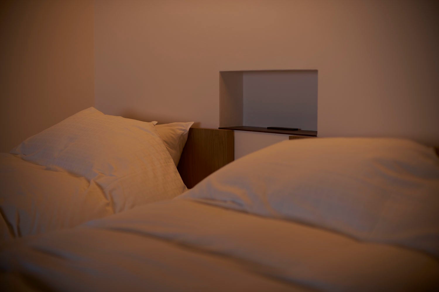 一方、客室は窓辺のデスク・寝室・小さな居間で構成し、安心して篭れる場所としています。虫や鳥の声、さざ波の音を聞きながら過ごす、焼津ならではの非日常の時間をお楽しみ頂けると思います。