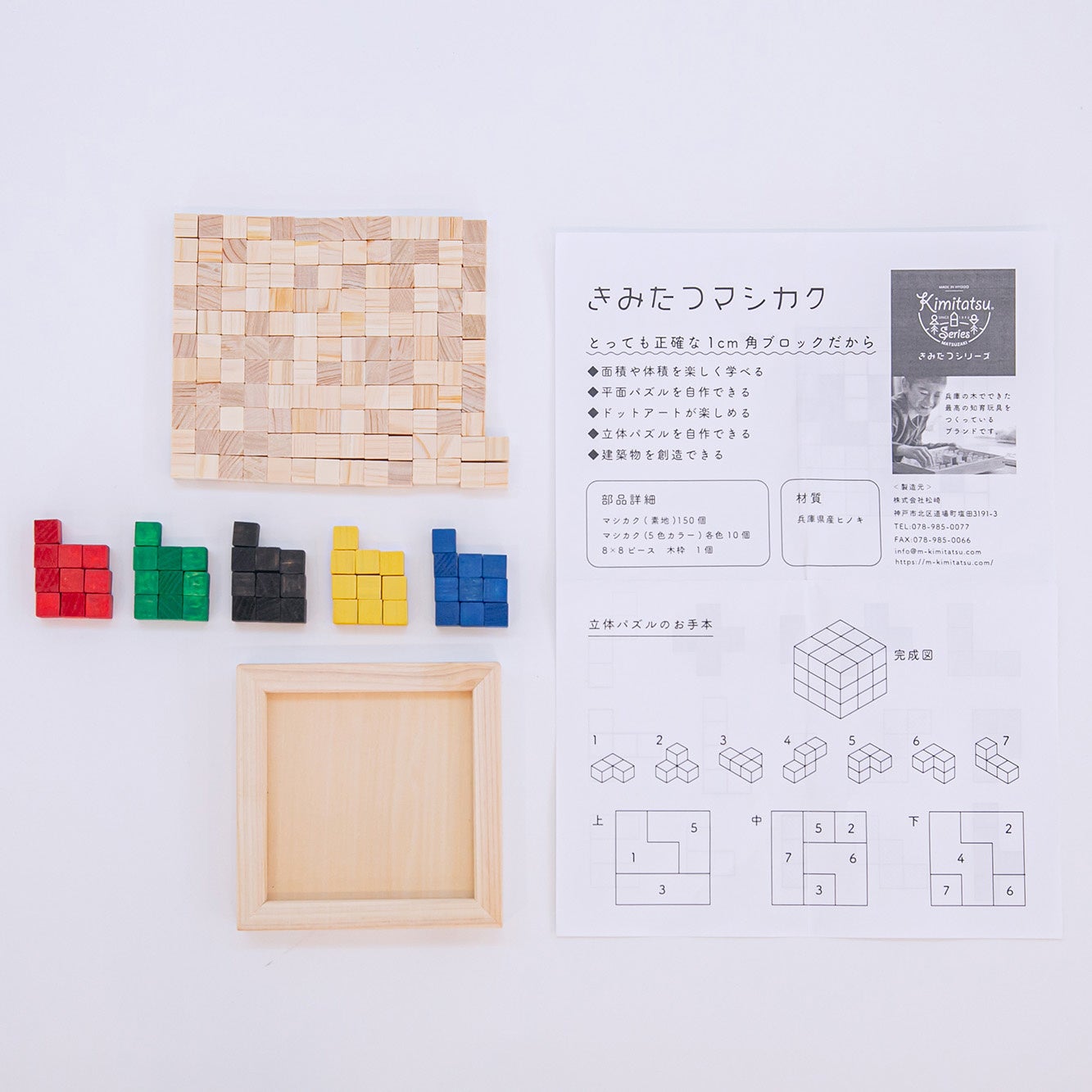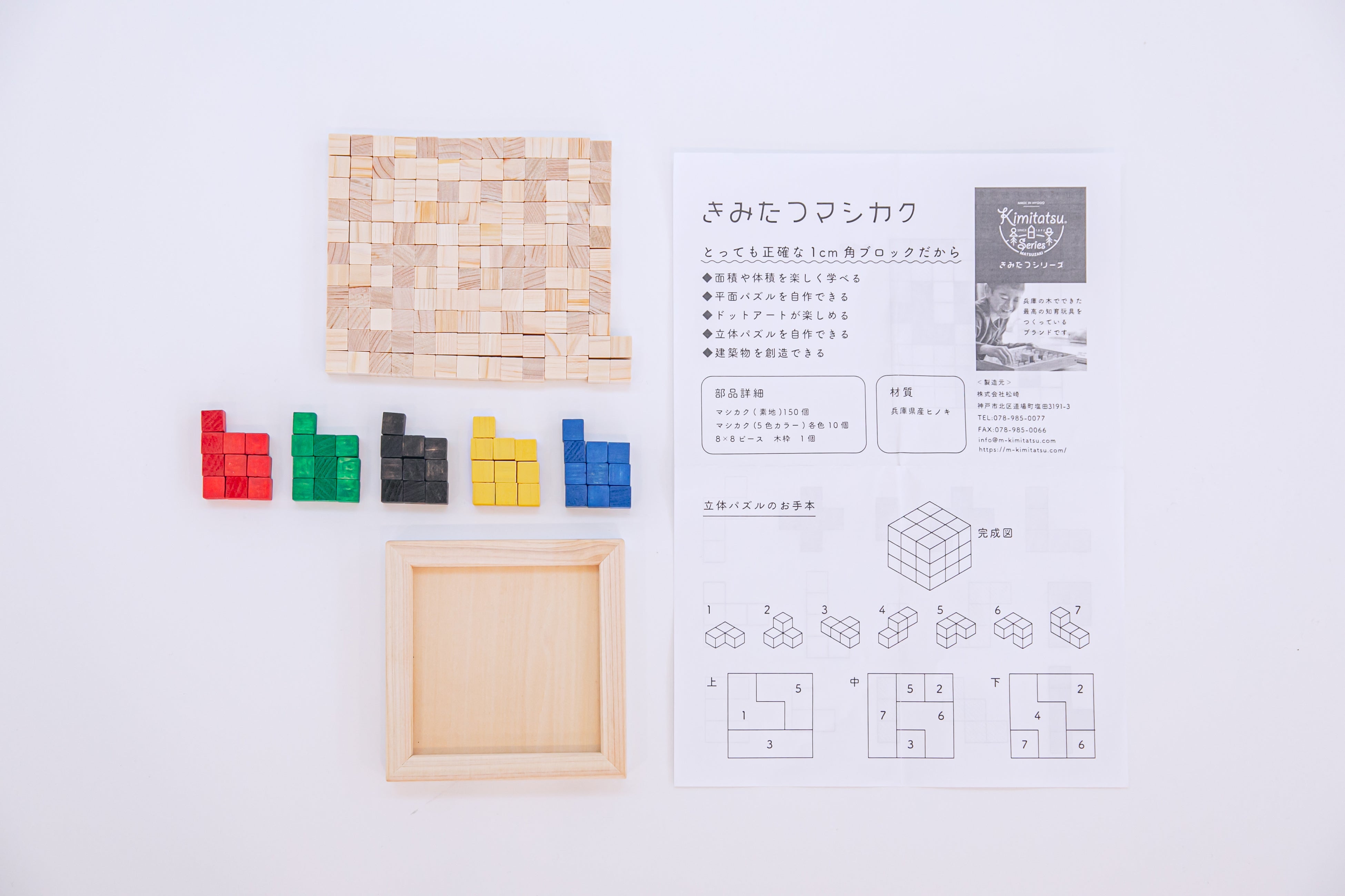 きみたつマシカクは、国産ヒノキでできた、精密な1cm角ブロックです。