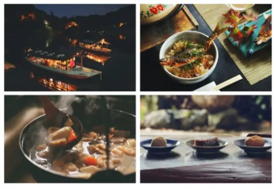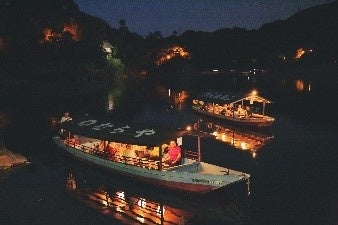 大洲のうかいは、夏から秋にかけての風物詩です。プランは「乗合船」と「貸切船」の2種類があり、「貸切船」の場合は登録店ごとに異なるメニューをお楽しみいただけます。毎年6月~9月下旬まで行われています。