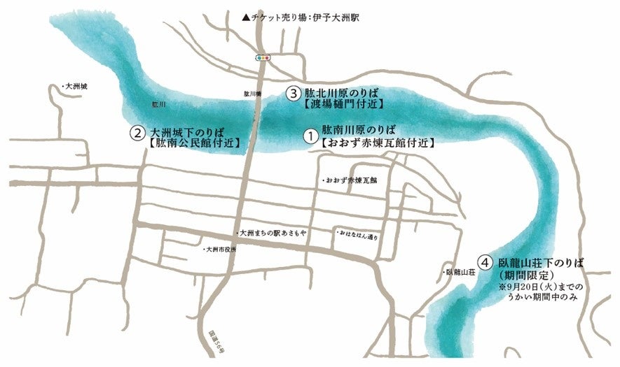 大洲地域の歴史文化など観光資源を活かした観光の活性化をおこなう一般社団法人キタ・マネジメント(愛媛県大洲市、代表理事 髙岡公三)は、大洲市内の観光スポットの周遊強化を目的に、肱川をめぐる定期船『おおず城下のお舟めぐり』の運航を7月16日(土)より開始いたします。