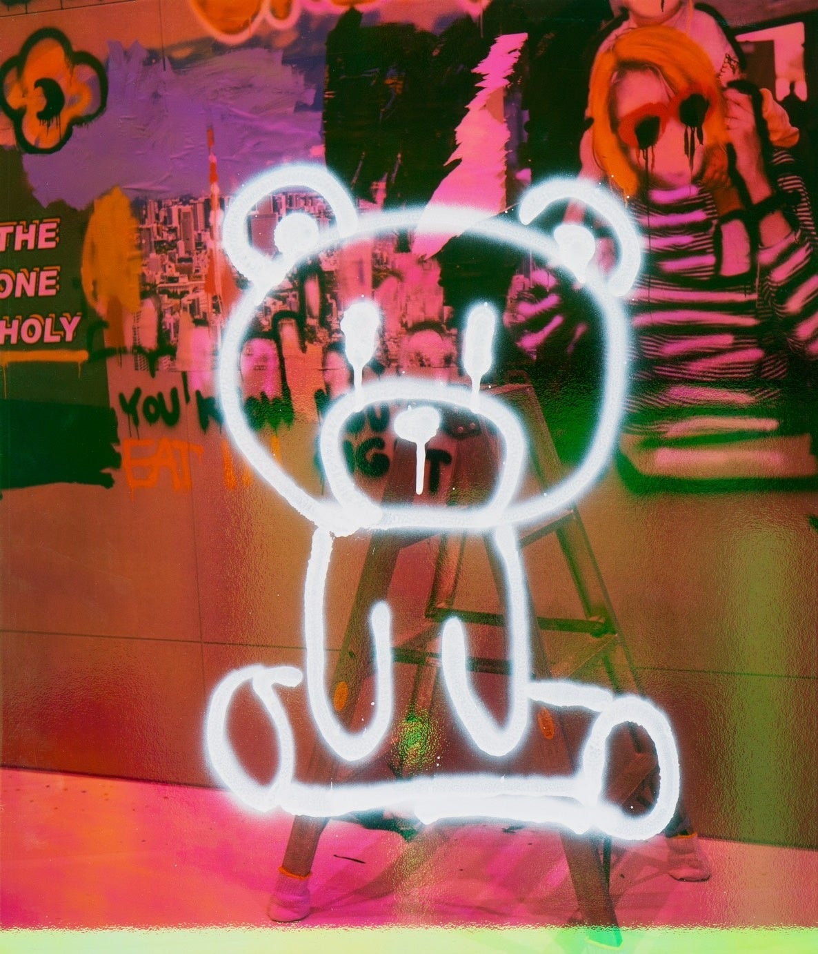1983年に大阪で生まれ、幼少期に言語障害・失読症を抱えるも、絵を通じて人とのコミュニケーションを行う。とあるイベントをきっかけに初めてアート作品を 制作したにも関わらず選抜され、京都文化博物館で展示を経験。そこから現代アーティストとしての活動を始める。1 8 歳でアメリカに渡り、オレゴン大学ア ート学科に入学。B F Aを取得後、現代アーティストとしての地盤を固めるため、ルーツでもある日本に帰国。ストリートアートからヒントを得て、新しいアートの 形を試すために服やバックに直接ペイントを施す。アートとの接点を少しでも増やすため、アパレルブランド“guernika”を設立する。現在はペインティングや コラージュ、立体、写真、映像、さらにはファッションツールまで、多様な素材や技法を駆使し、現代社会に対して問いを投げかけている。