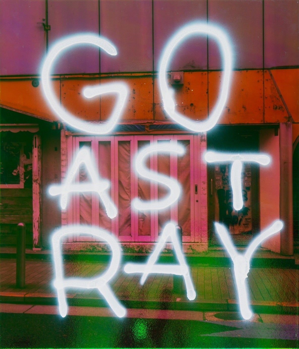 オーロラペイントと題したこの作品で使用している写真は、常に変化し続ける普通の飾らない日常の風景を 私が撮影しました。 その写真の上にオーロラフィルムを貼ることにより、光の量、見る角度で色が変化し、写真に撮ると実際に 見ているものとは違うものが映る事で、SNS やインターネットの中での着飾った消えない世界と現実の違い を比喩しています。作品を正面から見ると鏡のように反射して映り込む自分の今の姿も含めて作品の完成形となりますが、 これは今あなたが見ている世界は真実なのか?という疑問を投げかけています。