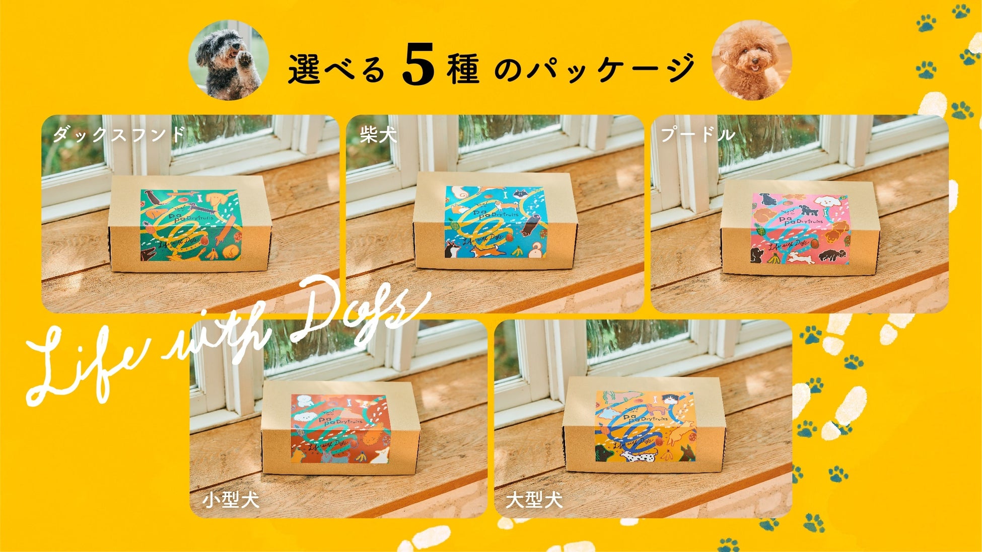 この期間内にご購入のお客さまには、選べる5つのオリジナルボックス(プードル・柴犬・ダックスフンド・大型犬・小型犬)に、ドライフルーツ4種(マンゴー・バナナ・パイナップル・レッドドラゴンフルーツ)を入れてお届けします。