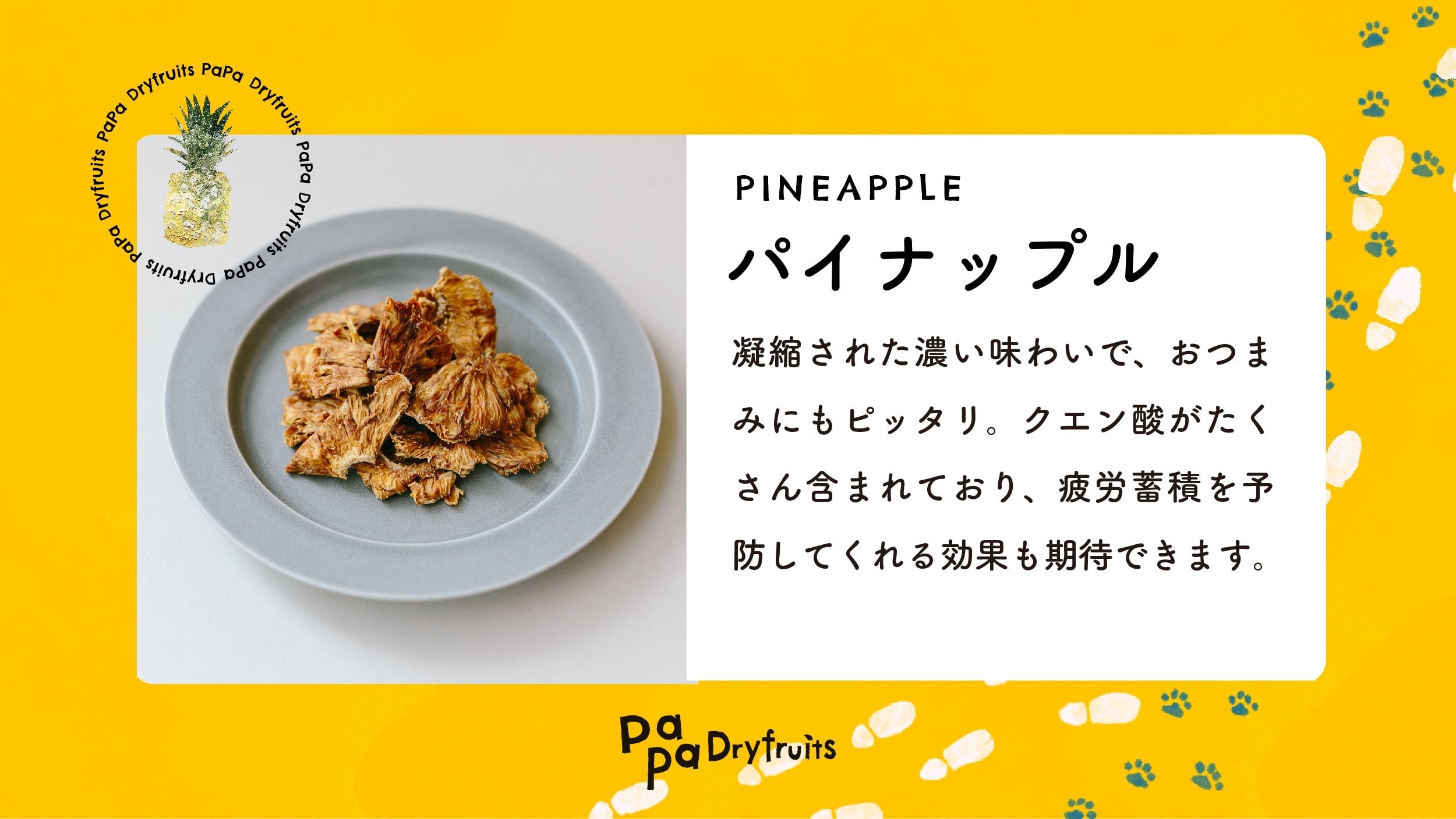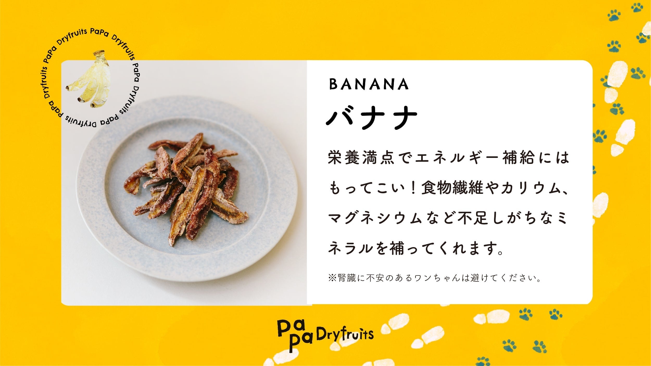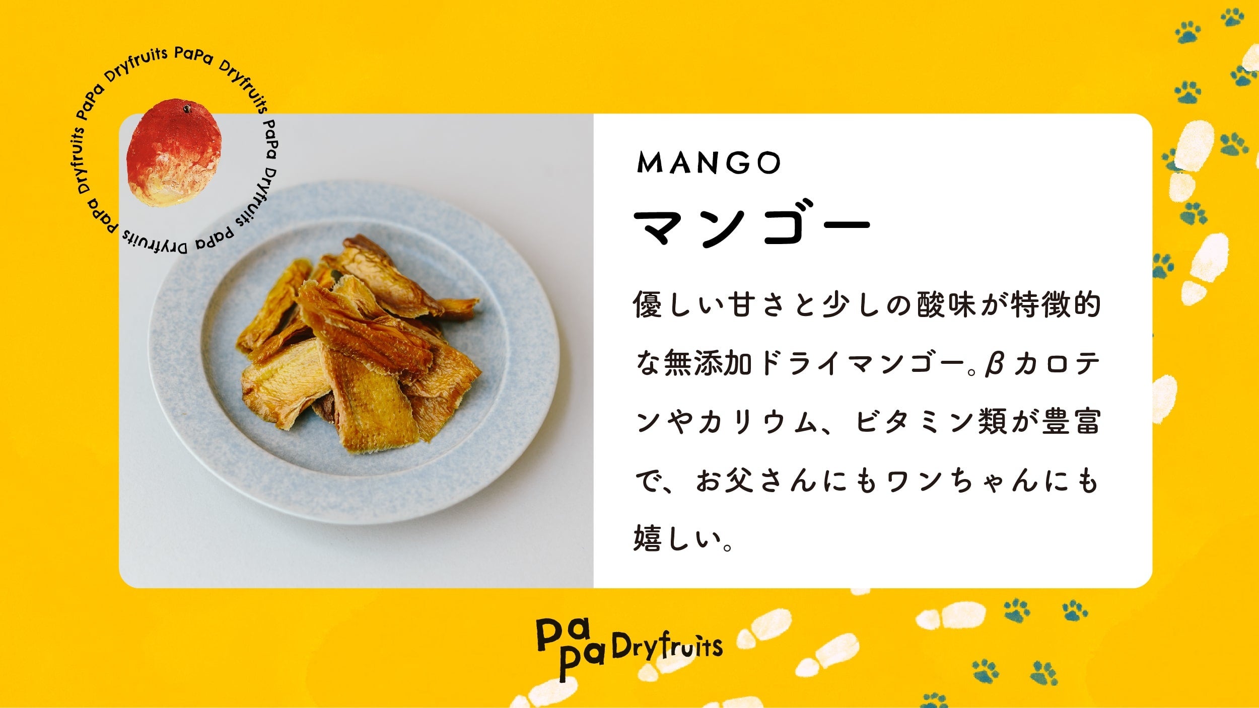 添加物や砂糖を使っていない『Papa Dryfruits』のドライフルーツは、人と愛犬が一緒に食べることができます。6月19日の「父の日」に合わせてお父さんのおつまみに、愛犬のおやつに、家族の朝食に、さまざまなシーンで食べていただけたら嬉しいです。