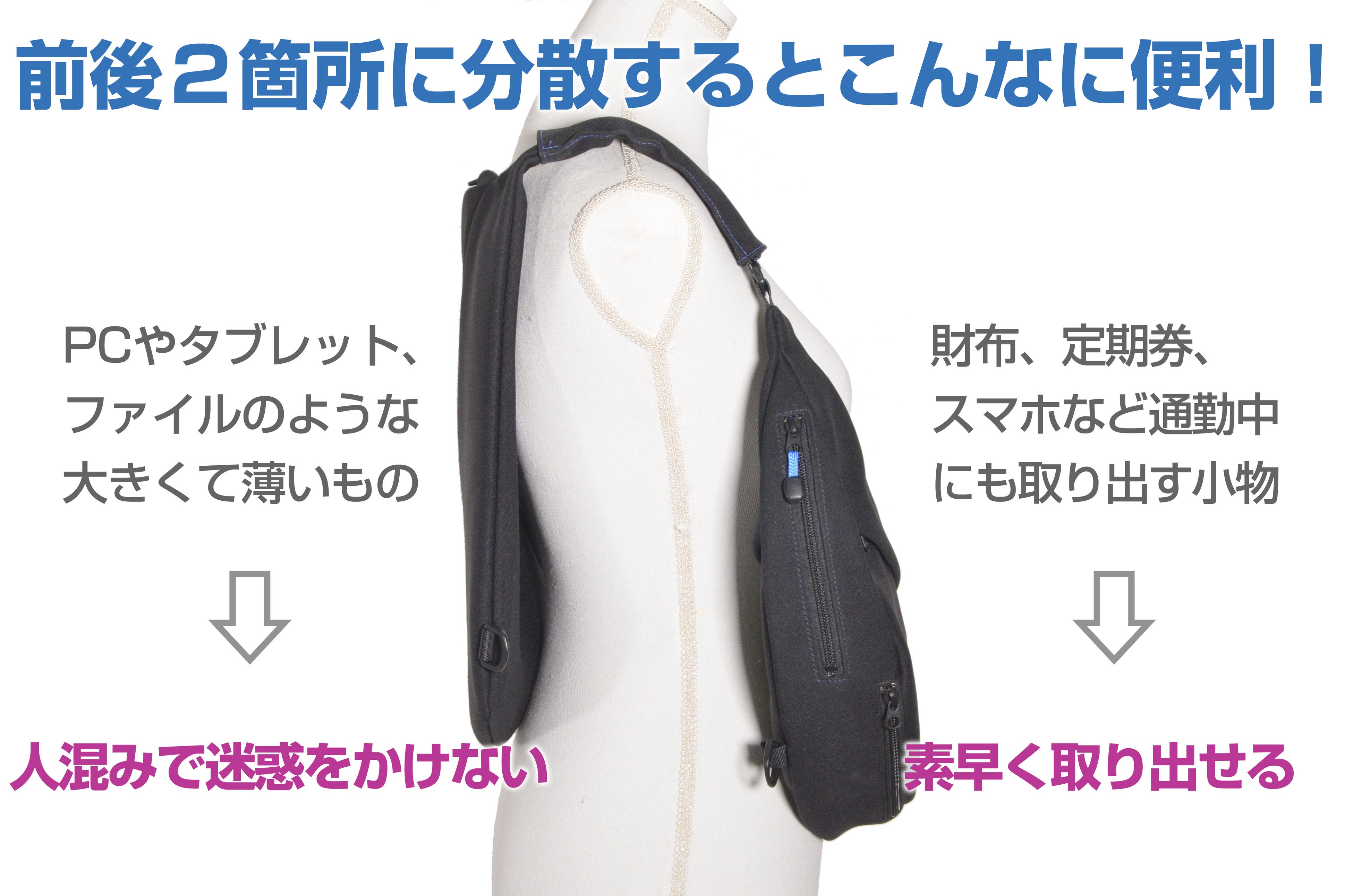 ・利点は多いのになぜかカッコ悪く見えてしまう前持ちリュックを普段使いもしやすくしたいという発想から生まれた。