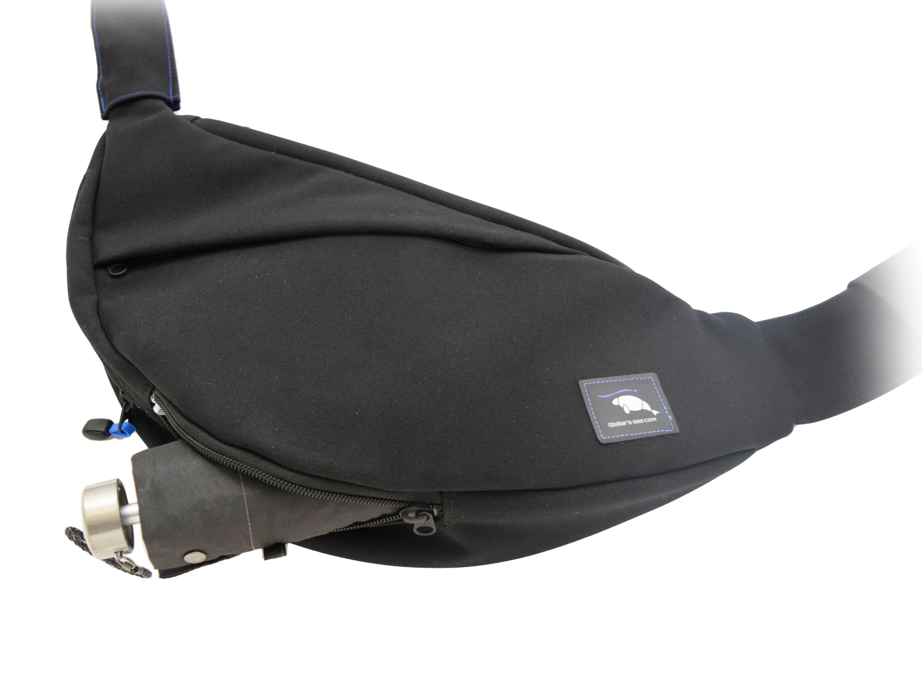 荷物を前後に分散し、左右非対称にすることで、カッコ悪さを軽減。