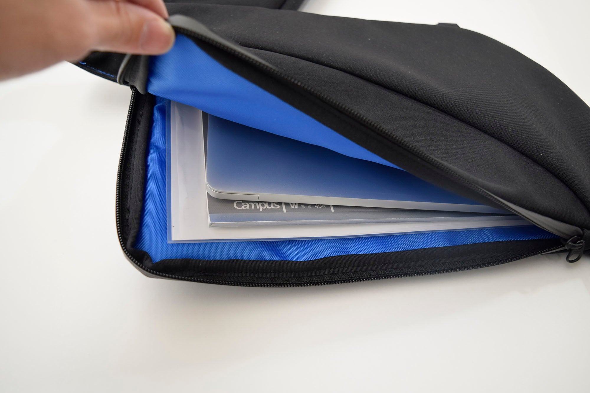 ノートはもちろん14inchパソコンも入る背面バッグ。