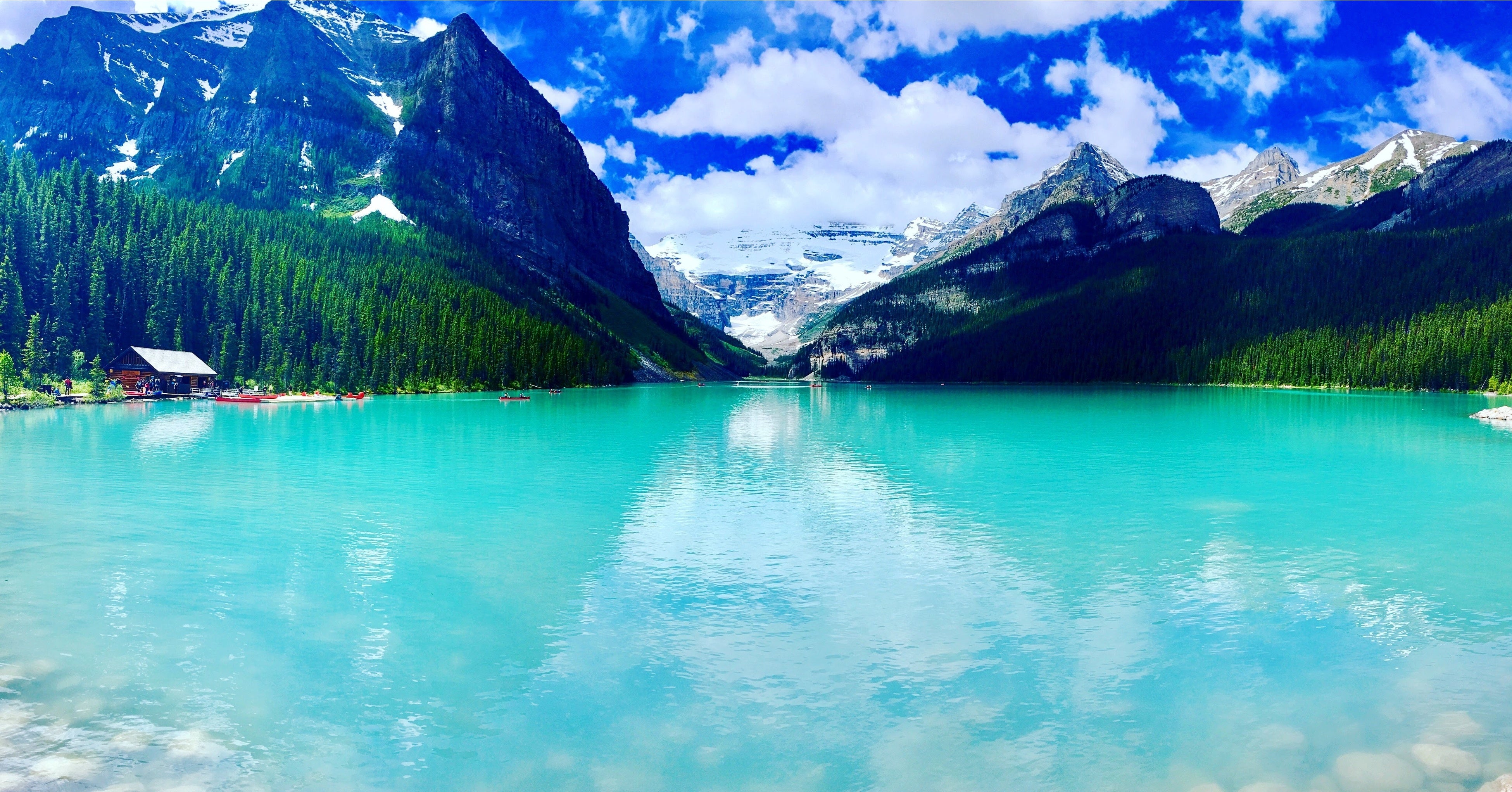 カナダのロッキーマウンテンに囲まれたレイクルイーズ。絵具を溶かしたかのようなエメラルドグリーンの湖を
