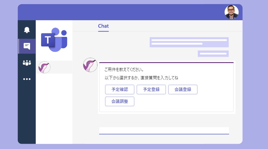 本サービスはユーザーとの自然な会話に対応できるAIチャットボットのソリューションになります。Microsoft TeamsやMicrosoft 365との連携により、ユーザー認証のシングルサインオン(SSO)やチャットボットを介したOutlookの予定表の操作(予定の参照、登録や他ユーザーとの会議調整等)が可能となり、Microsoft 365利用企業の社内DXの推進、業務の効率化に貢献致します。