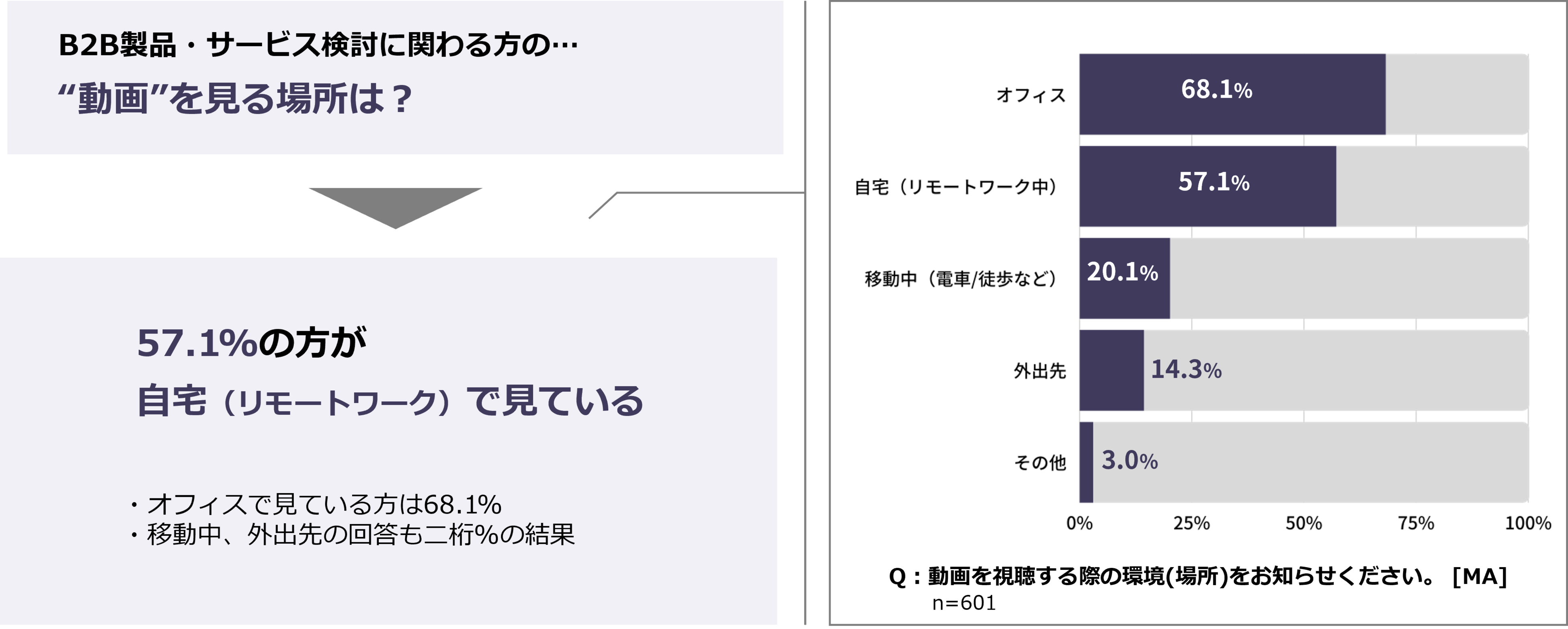 ・ 自宅(リモートワーク中)での動画視聴者は57.1%