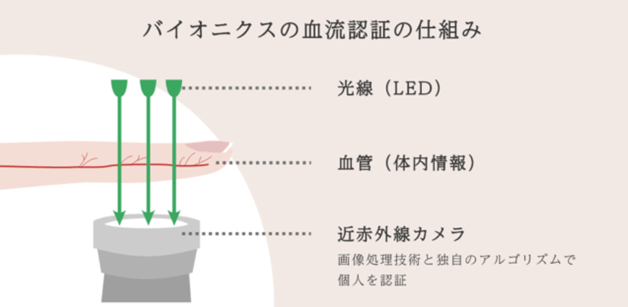 また、指紋や虹彩とは違い、体内の情報を用いるため、盗難や複製、不正な使用のリスクもなく、管理が簡単。体調や体毛、肌荒れなどの要因の影響を受けにくいのが特徴です。