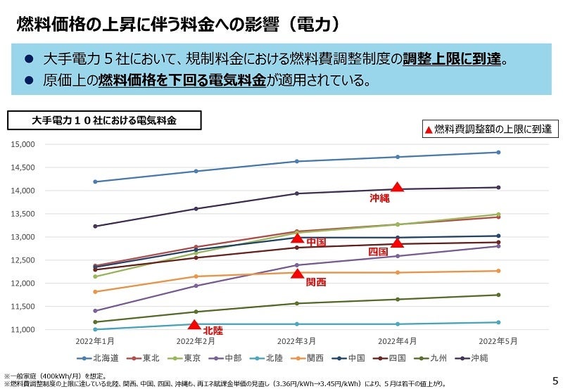 大手電力会社10社中、4社は値上げ、6社も燃料費の上昇分を価格転嫁できる料金制度の上限に達したと発表しました。高圧供給や特別高圧供給など、法人・事業者向け料金は全10社が7月より値上げが行われます。