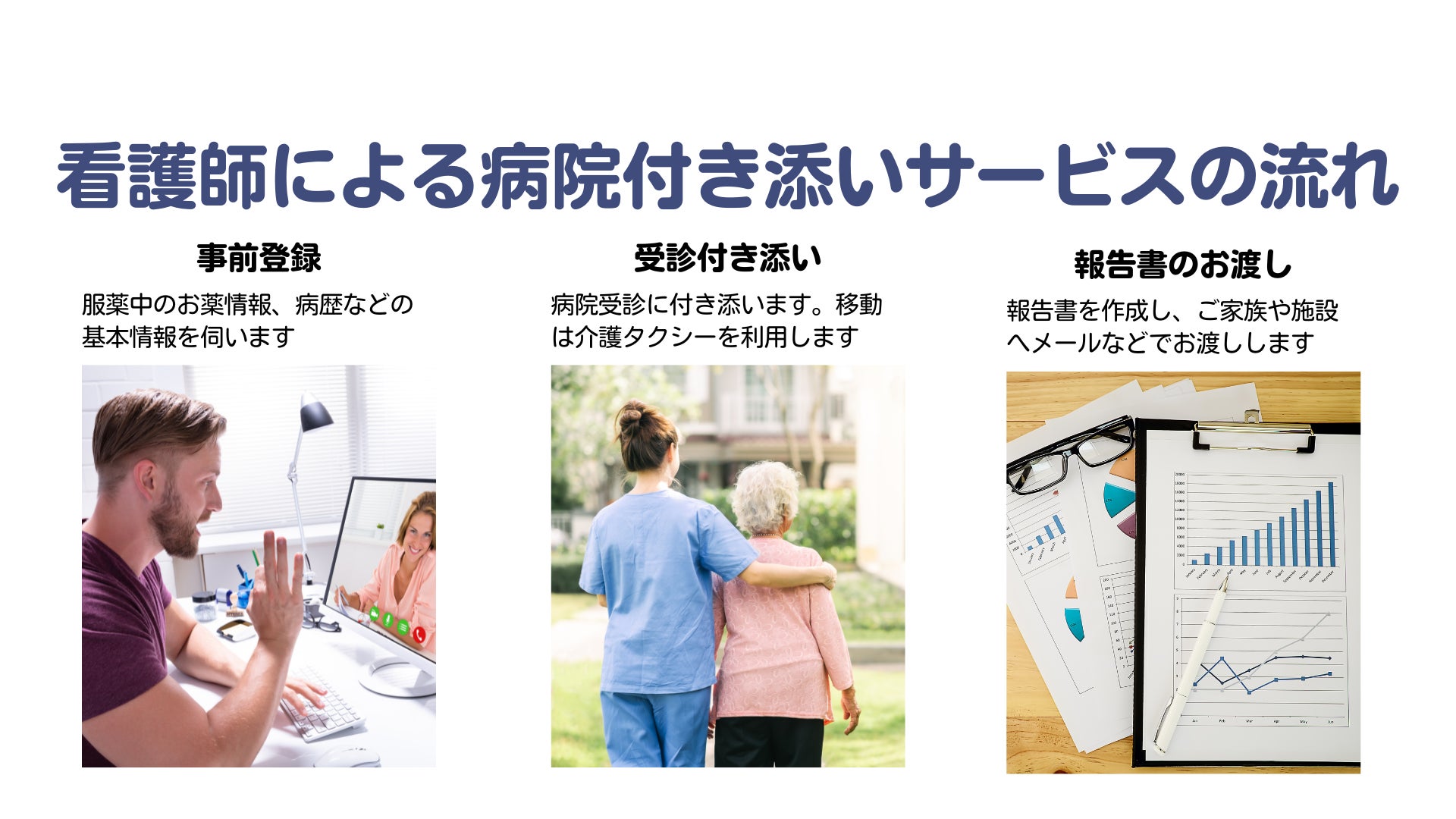 看護師による病院の受診付き添い代行を軸として、ケア関連サービス提案、相談などを行う会員制プラットフォームの事前登録受付を開始しました